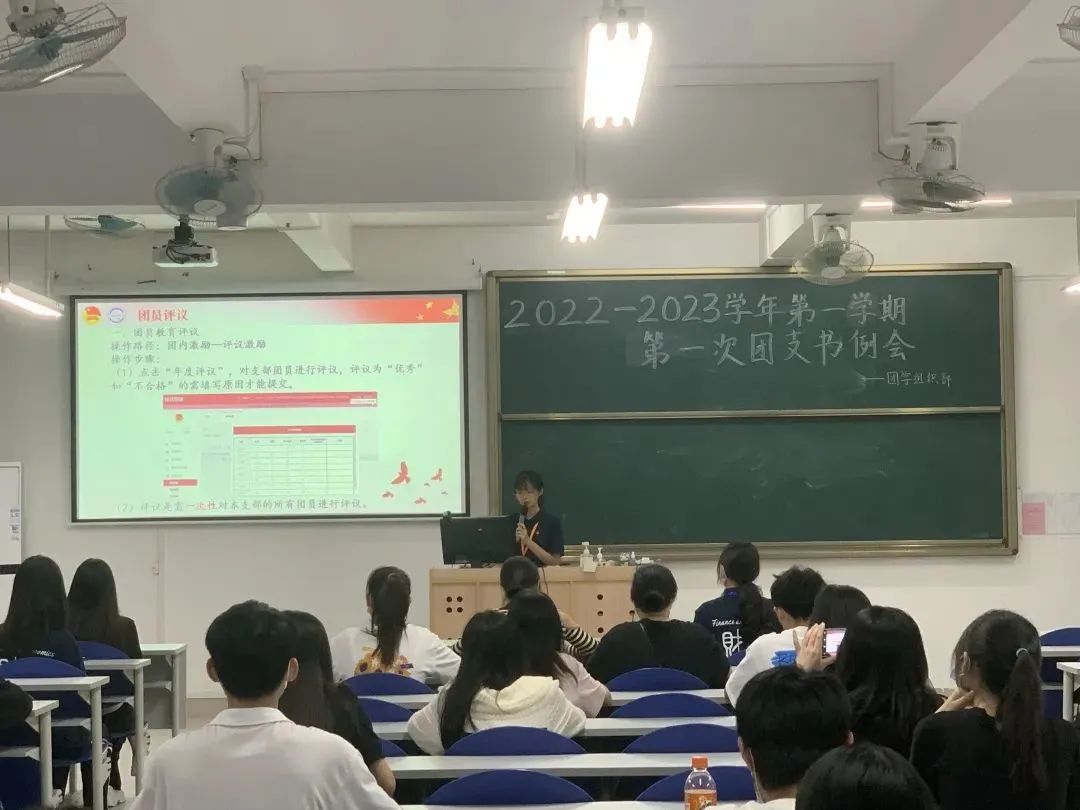 本网讯 为了响应党和国家号召,迎接和学习贯彻党的二十大主线、庆祝建团100周年、做好发展中国共产主义青年团队伍的工作,财经系团学组织部于2022年11月11日晚上19:00在T103召开了2022-2023学年第一学期第一次团支书例会。本次会议由财经系组织部部长主持,主要向19-22级各班的正、副团支书介绍本学期的工作安排,并讲解智慧团建新上线的党史专题录入——“党的二十大精神”。