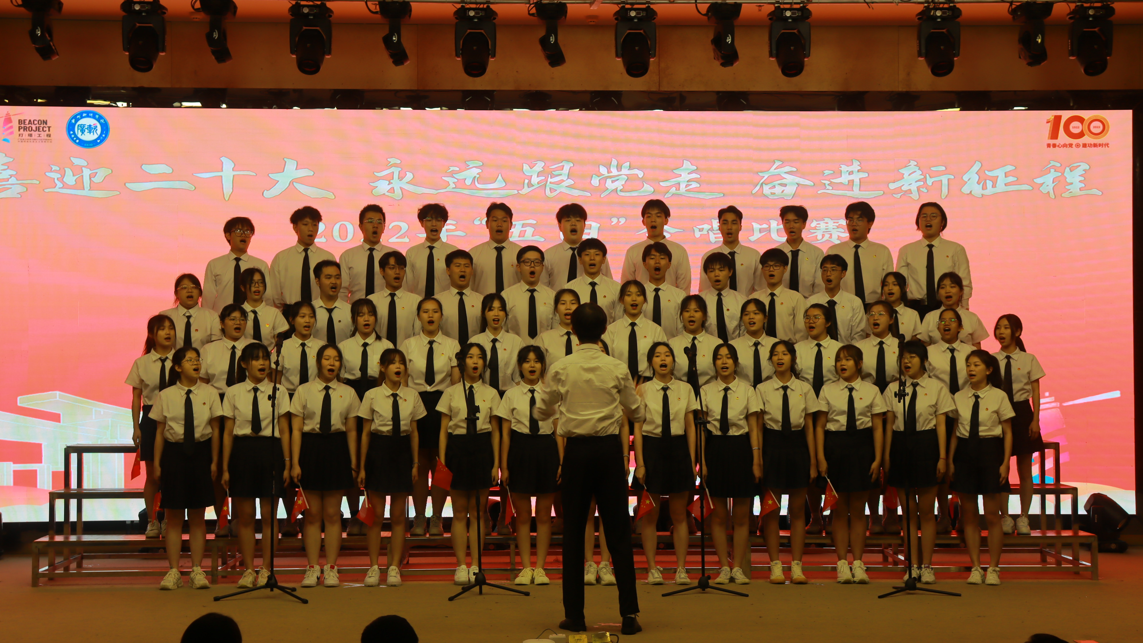 本网讯 唱响青年节,放飞青春梦。为了弘扬“五四”精神,继承优良传统,培养团结协作精神,丰富校园文化,2022年5月27日晚18:30,广州软件学院于学术报告厅举行“喜迎二十大,永远跟党走,奋进新征程”2022年度五四合唱比赛。