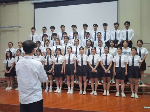 为了在比赛中呈现更好的舞台效果,每一个夕晖笼罩屋檐的傍晚,每一个月光洒满窗台的夜晚,都能听见同学们嘹亮的声音。即使训练辛苦,即使来回奔波,即使喉咙干涩,师生们都以饱满的热情去面对每一次排练,只为在比赛中展现出管理系的精神风貌。