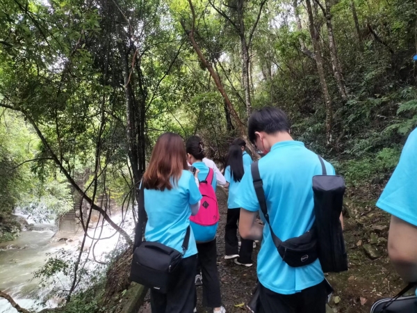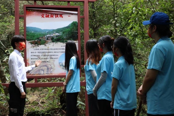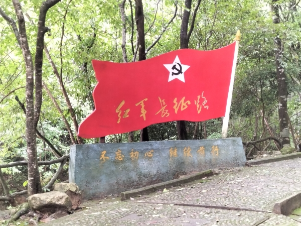 沿着山路一路攀登,石阶上布满青苔,组员们小心翼翼地攀爬,在攀登过程中,大家感受到了当年红军抗战的不易和艰苦。烈士的英勇事迹永不磨灭,英勇的精神光辉长明不熄。