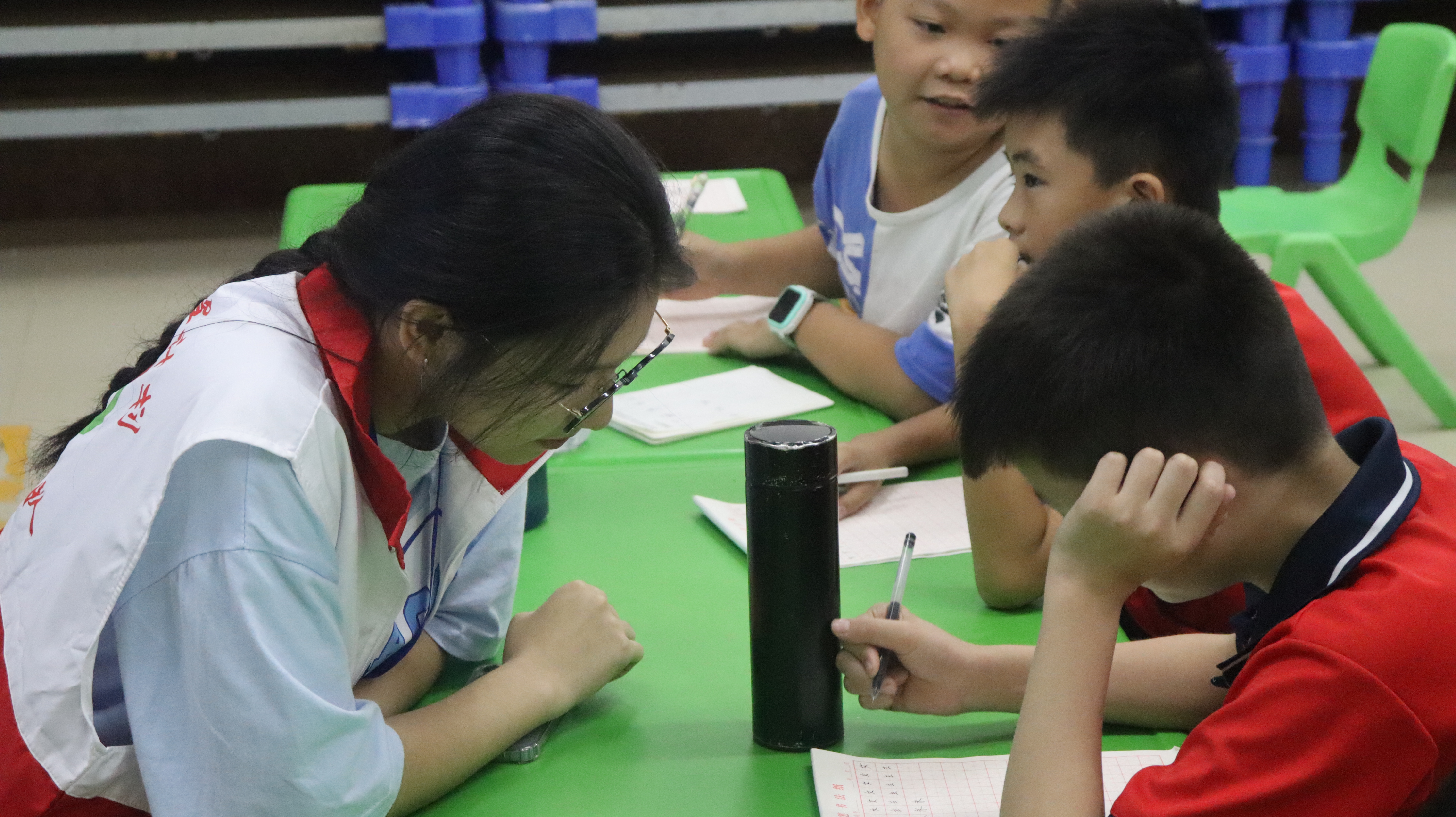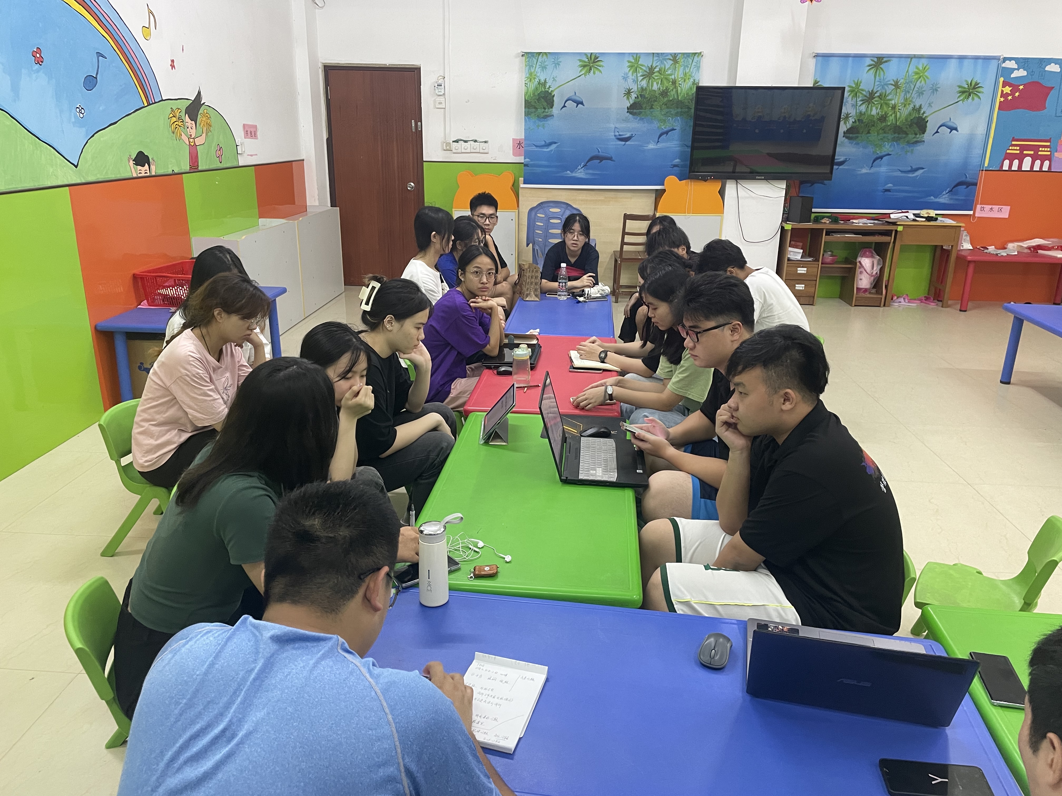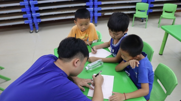 “我或许不是一名真正的老师,但我会努力成为孩子们心中的好老师”。2022年7月9日晚,队员们经过短暂的休息后便开始着手第二天的课程教学,对于他们来说,如何在释放孩子们好玩天性的同时管理好课堂纪律是一项严峻的挑战,对此服务队支教组的队员们不断总结每日授课所出现的问题,改进授课方案,制定与年龄段相符授课的模式,力求把孩子们带入知识的海洋,感受学习的乐趣。他们在课堂外也展现出属于新时代青年的风貌,把他们最阳光、最开朗的一面展露给孩子们。课程涵盖“大手拉小手,青春不“毒”行”、“启声韵格律,助力推普童心向党”等特色主题,皆在增强孩子们自我保护意识,培养孩子们爱国爱党之情。