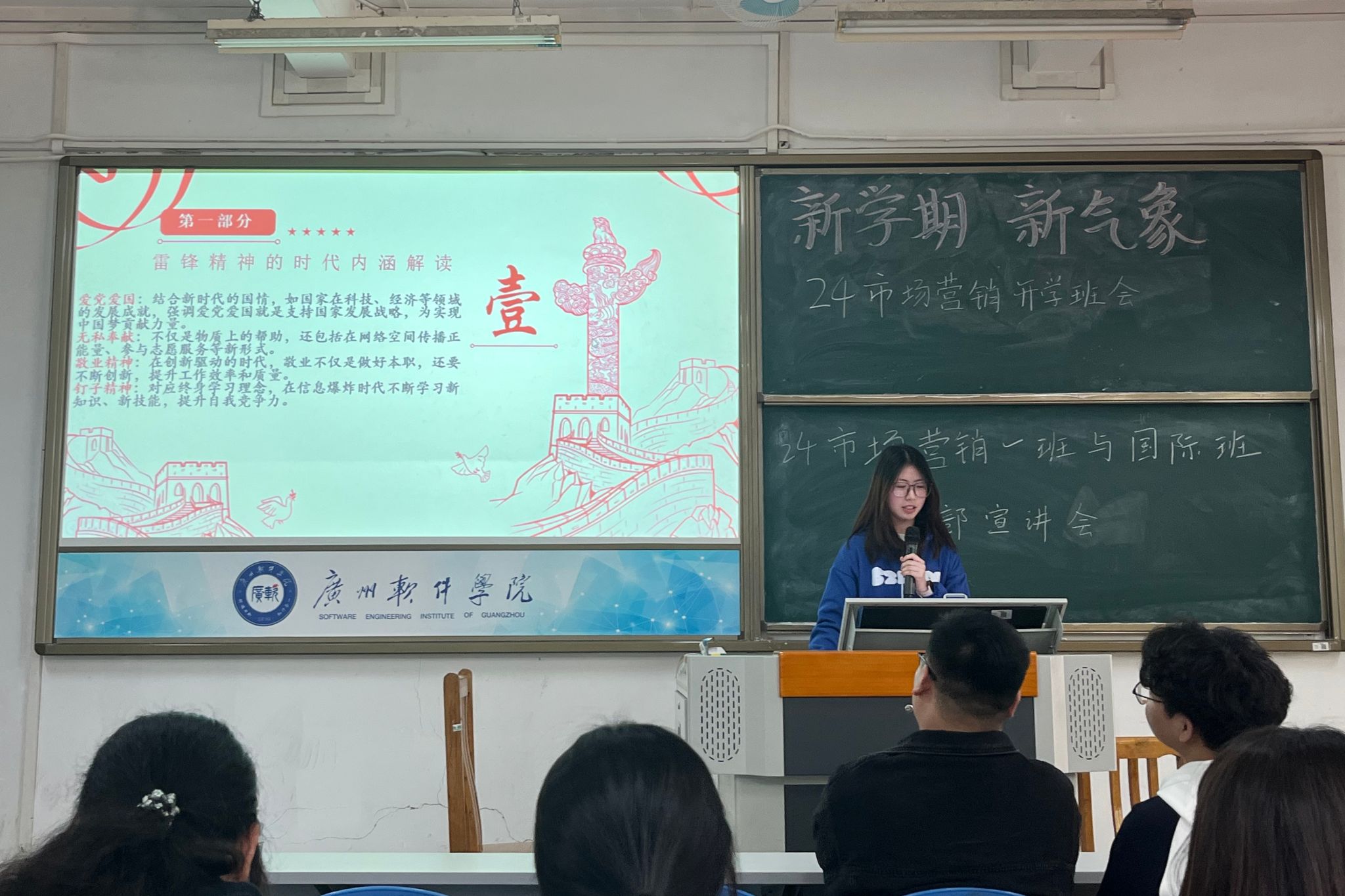 各班级开展雷锋主题班会,通过观看纪录片、分享身边好人好事、朗诵雷锋日记等形式,让同学们深刻体会雷锋精神的时代价值。部分班级在党组织指导下,团支部创新性地开展 “雷锋行动打卡” 活动,鼓励同学们从身边小事做起,日行一善。这一活动引导同学们在持续践行中深化对雷锋精神的理解,培养乐于助人、甘于奉献的优秀品格,将党团教育融入日常学习生活。