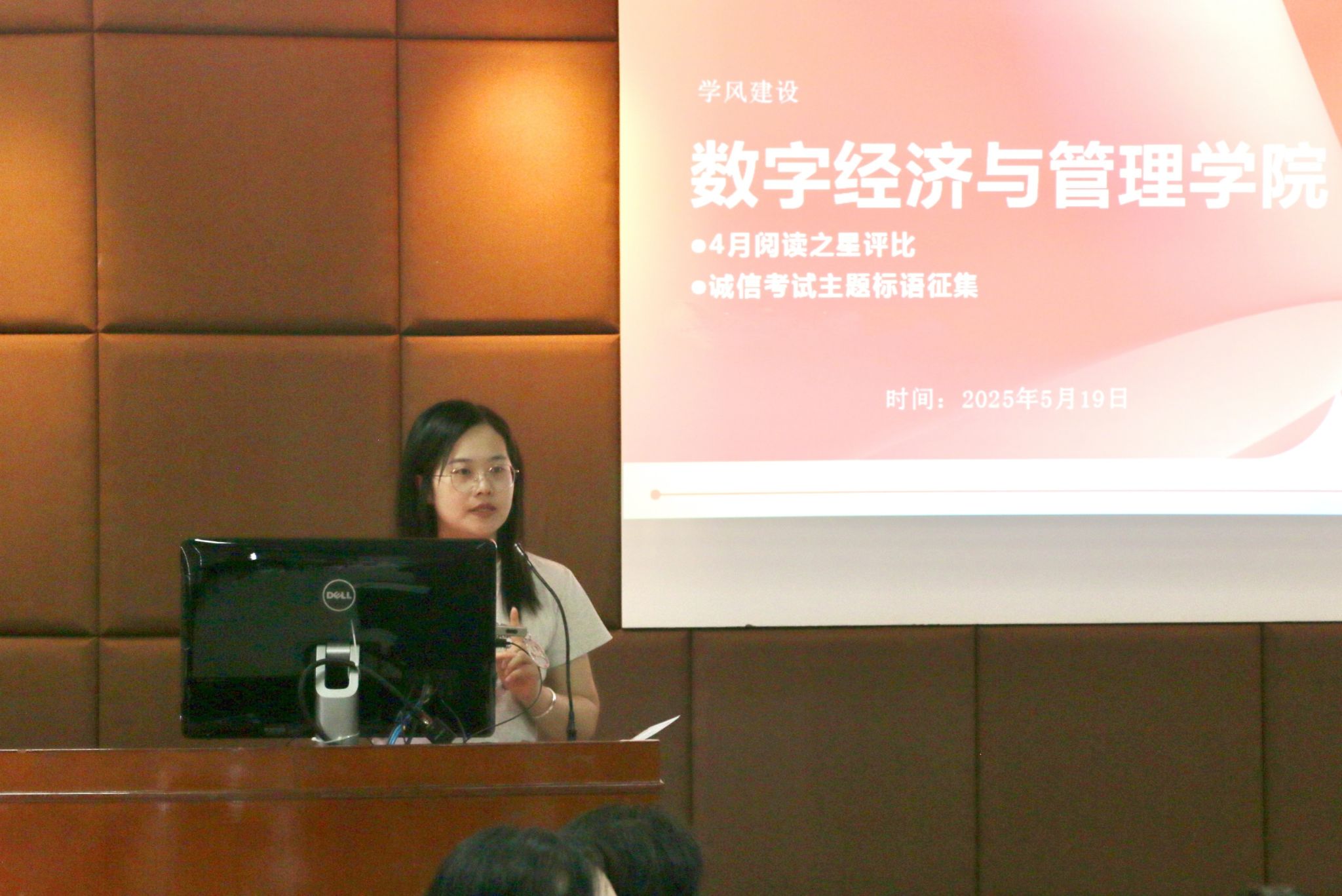 最后,吴卓君老师作总结,她充分肯定了同学们在参与“诚信考试”主题标语设计及四月阅读之星评比等活动中的积极性。同时,她强调,加强学风建设既是提升教学质量的基石,也是培育优良学风的关键抓手。她倡导同学们继续积极参与学风活动,把优良学风传递到班级与宿舍建设中,从而为学院的学风建设奉献自己一份力量。