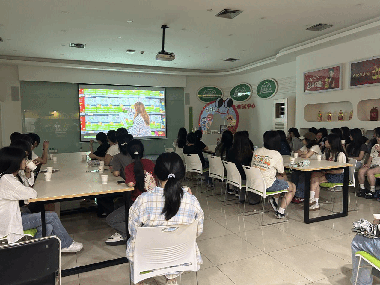 参观环节随后转入工厂视频展示室,师生们品鉴着金龙鱼豆奶,一边集中观看工厂运营管理专题视频。视频中,通过动态画面详细呈现了智能仓储中心的运作逻辑:立体化货架、自动分拣机器人,让学生们清晰理解“库存优化”“物流配送效率提升”的实现路径,对课程知识点形成具象认知;同时,视频还聚焦质量检测环节,完整展示了原料农残检测、成品理化指标分析的标准流程,强调“质量是运营的生命线”,进一步帮助学生深化对企业质量管理体系的理解。