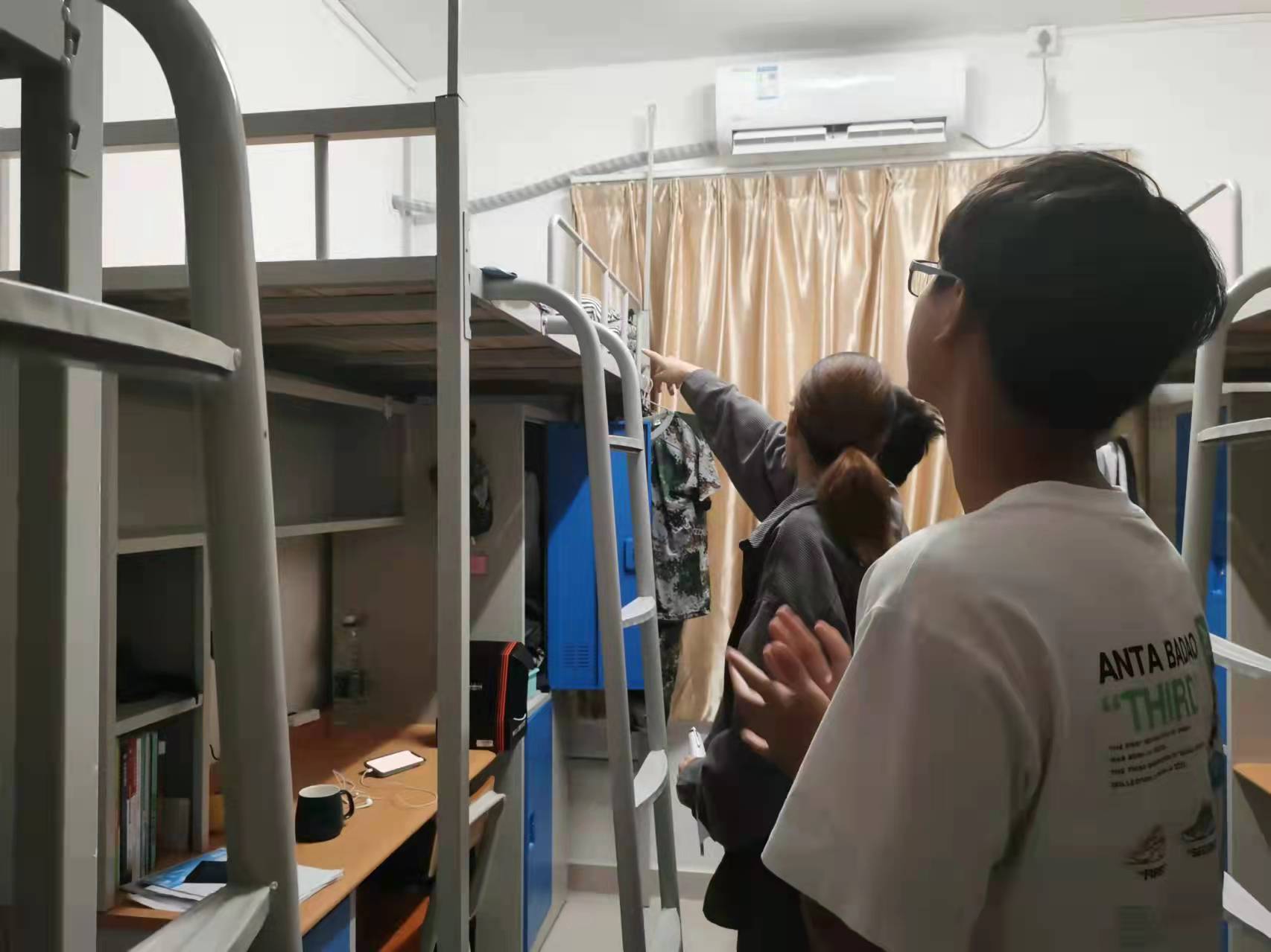 伴随着军训的到来 财经系的萌新们严格按照军训的作息表 早早的就起来整理内务卫生 导生团们也起了个大早 检查同学们的内务卫生 提醒大家内务的注意事项