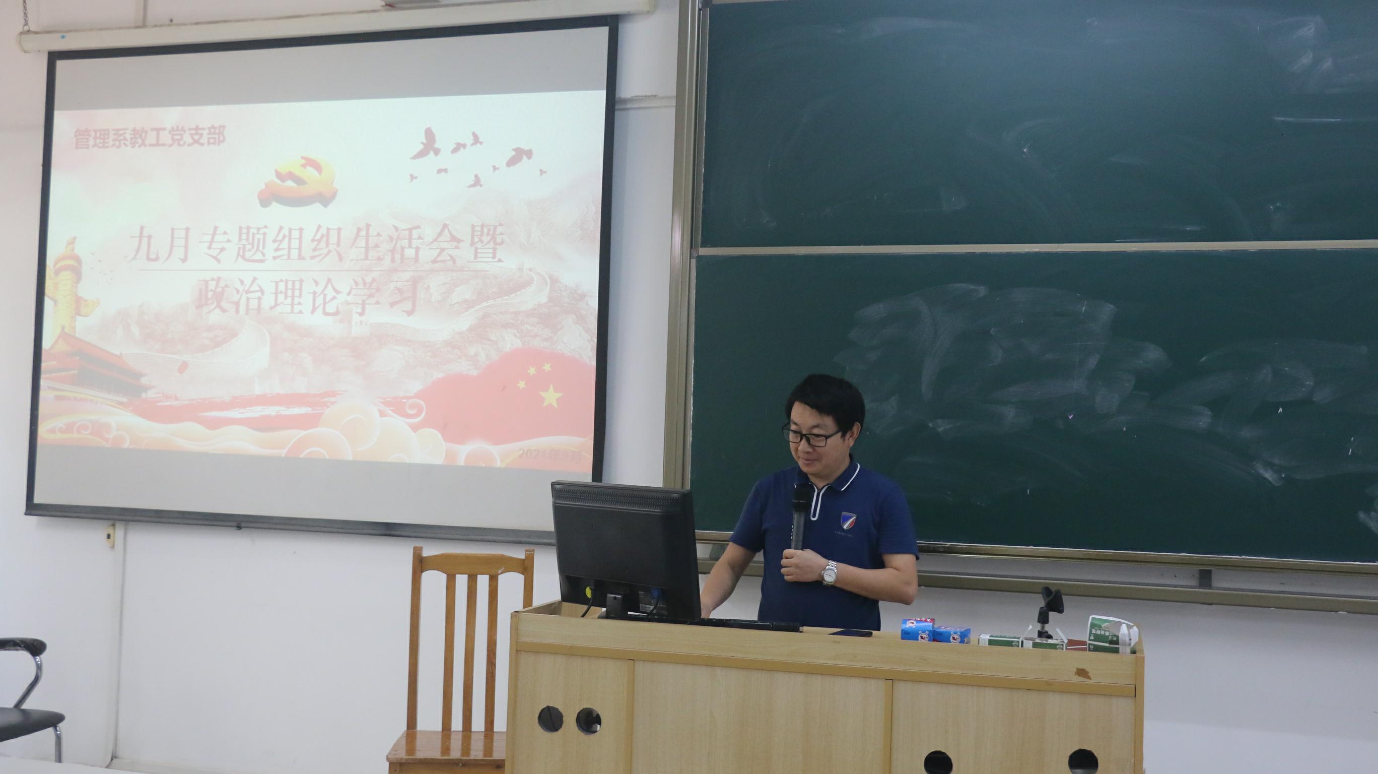 会议最后一项议程是王春生书记进行政治理论学习安排以及召开九月专题组织生活会。会议上,王春生书记带领各位老师进行支部政治理论学习。内容主要围绕“巩固党史学习教育成果、深入学习习近平总书记在庆祝中国共产党建设100周年大会上的重要讲话精神、深入领会习近平总书记七一重要讲话的重要意义、深入领会全面建成小康社会的历史成果”展开,并要求各党支部要组织本单位的党员组织学习中国共产党普通高等学校技术组织工作条例,做到高度重视、全面理解、准确把握条例的内容。