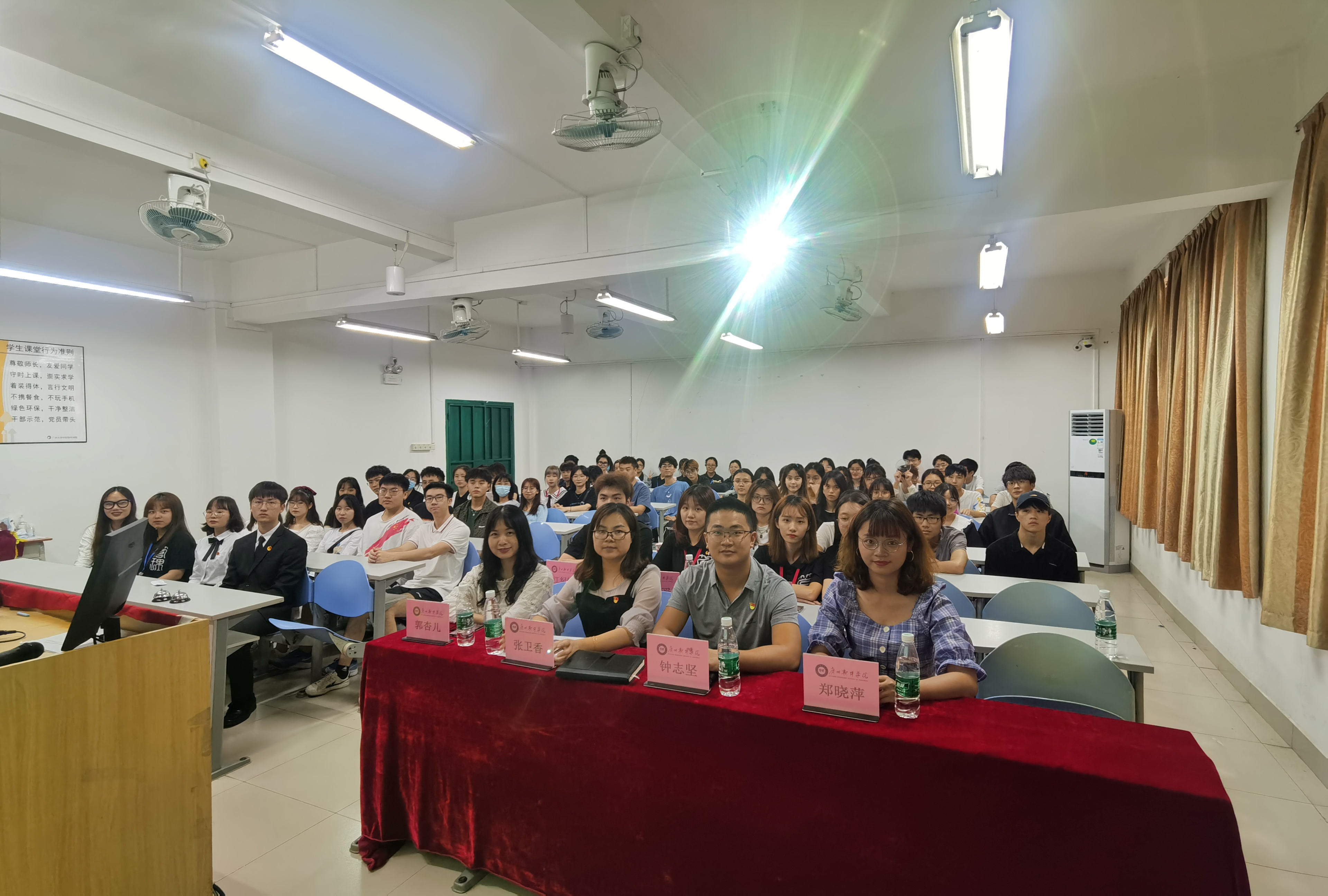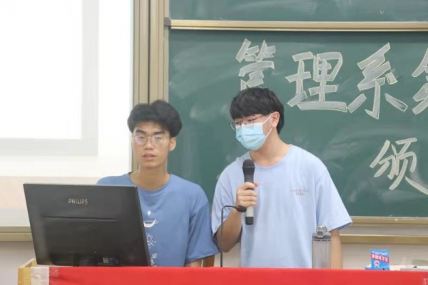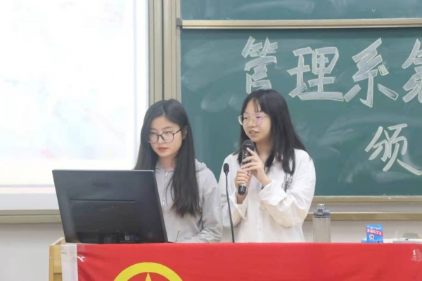 本网讯 2021年4月13日中午12:45,管理系于U101召开了第一届教师月颁奖大会。出席本次大会的嘉宾有:管理系党总支张卫香书记、管理系分团委书记兼学工办主任钟志坚老师、管理系学生会秘书长郑晓萍老师、管理系辅导员郭杏儿老师以及管理系团学大主席团全体成员。