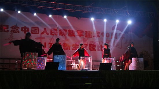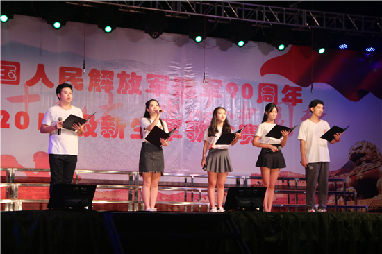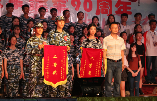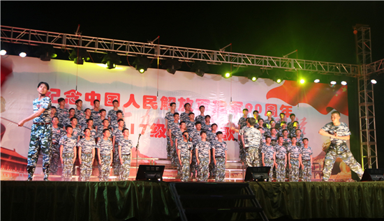 本网讯 2017年9月23日晚,我院在足球场举办纪念中国人民解放军建军90周年暨2017级新生军歌比赛。学院领导、系部负责人以及17级新生军训团全体教官、新生出席了本次比赛。