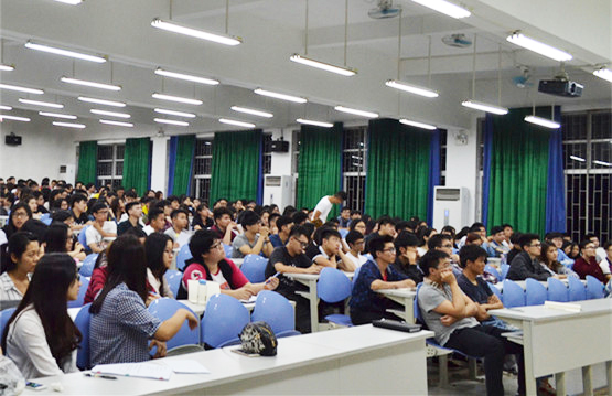 本网讯 为了激起大家学习英语的热情,提高我系的英语四级通过率,5月12日19:30,我系邀请外语系陈聪老师就四级复习冲刺策略开展讲座。我系12级和13级未通过英语四级的学生参与讲座,系副主任黄牧乾出席本次讲座。