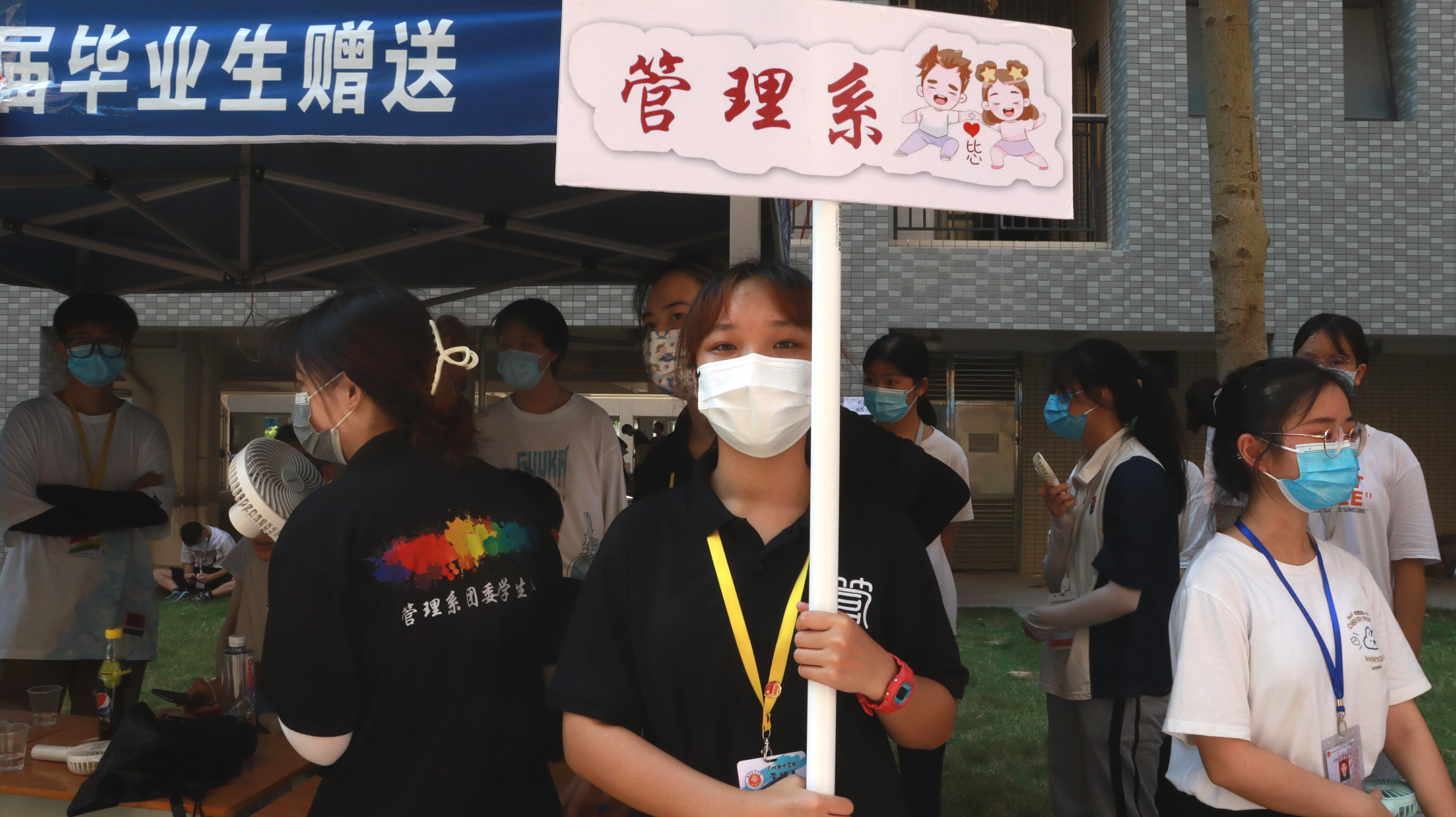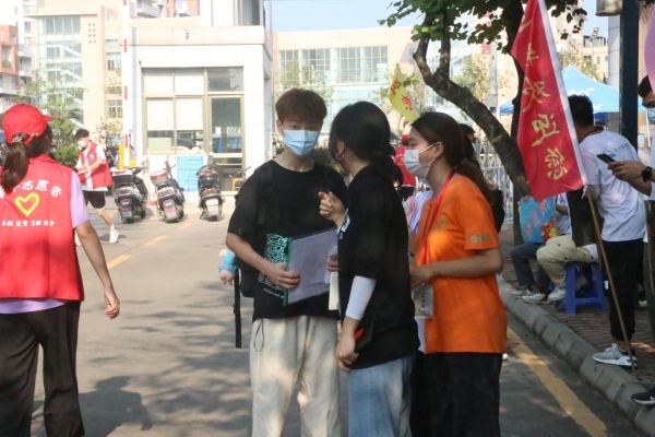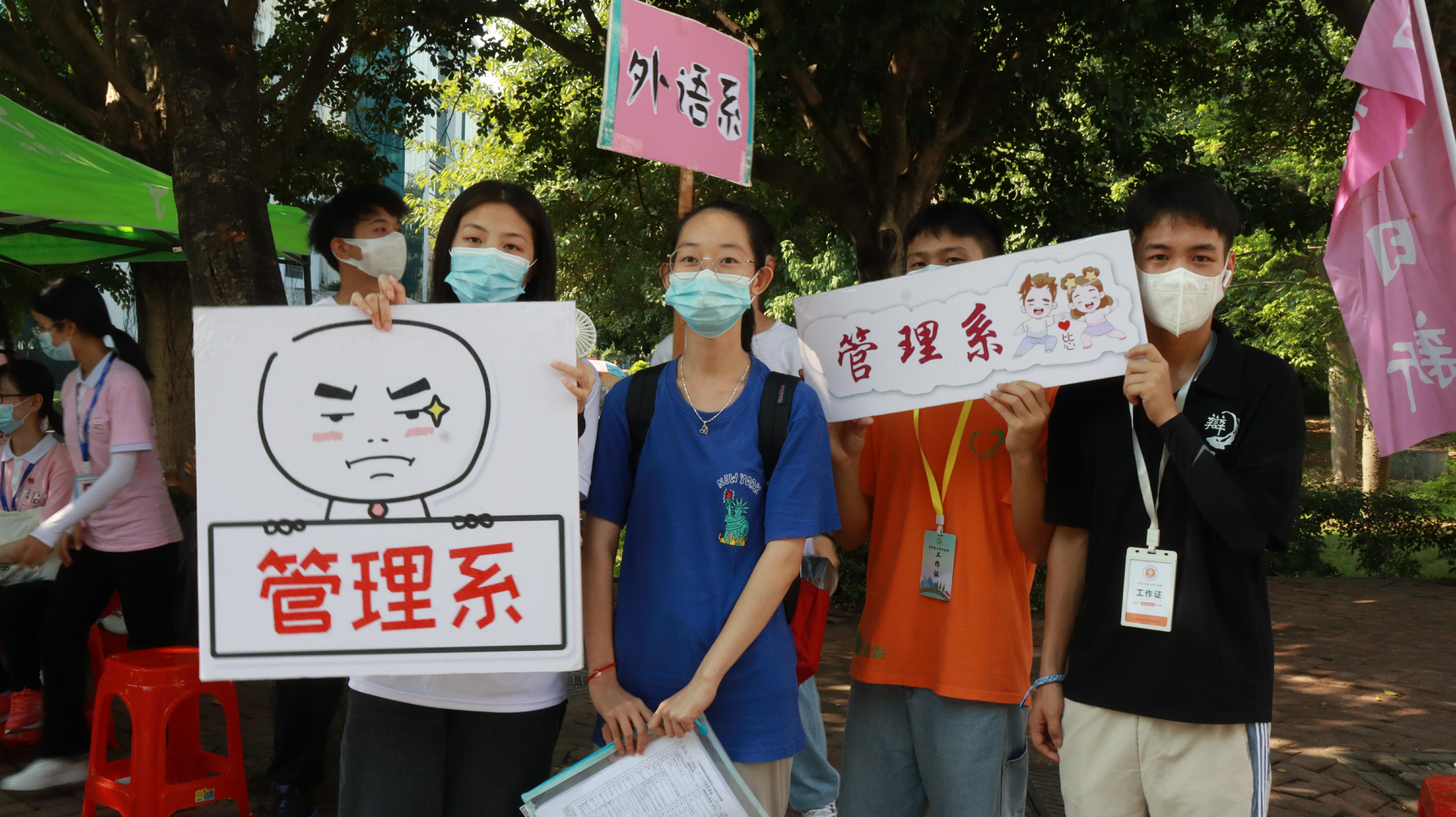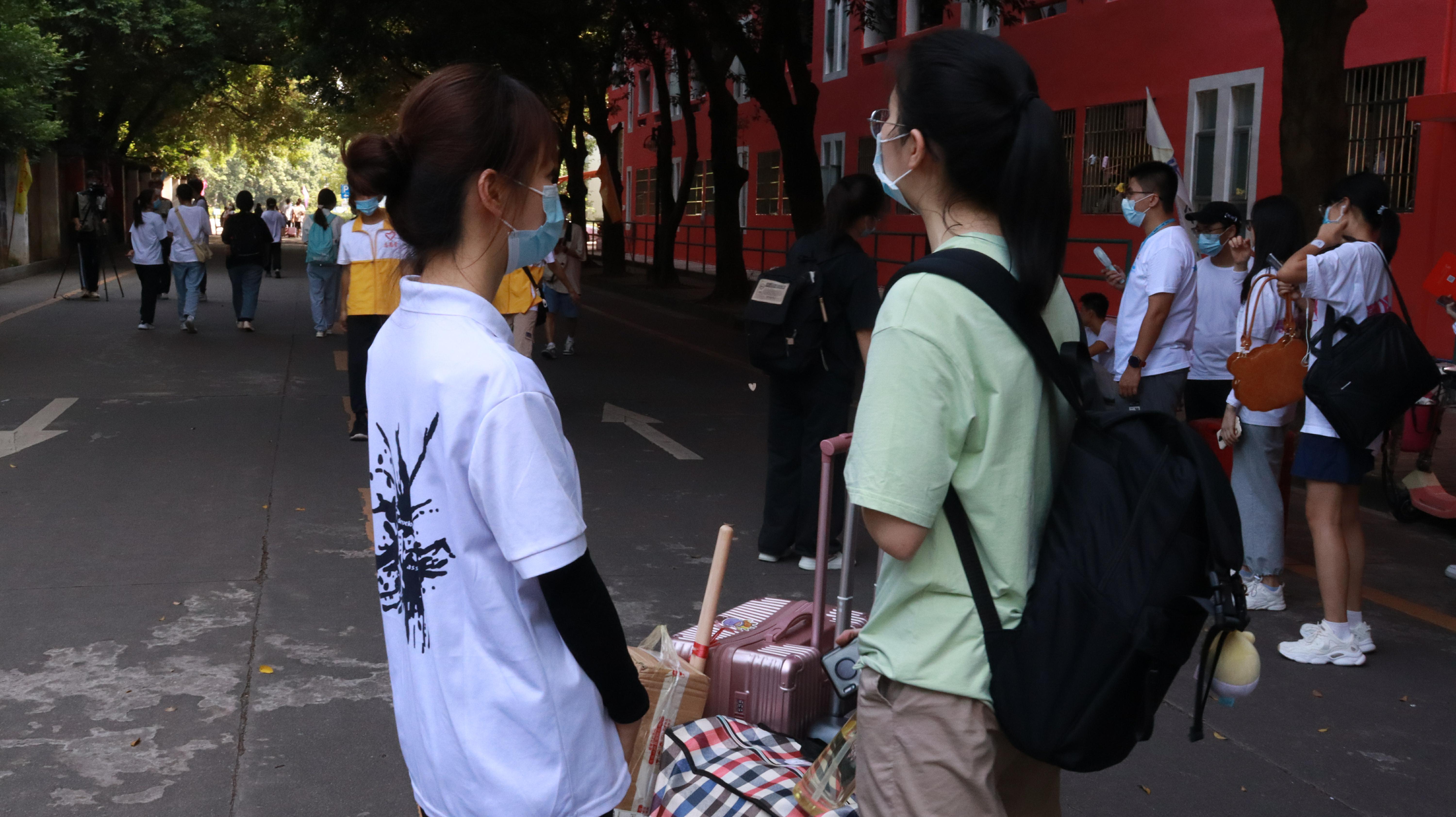 在宿舍区和校门迎新的工作人员