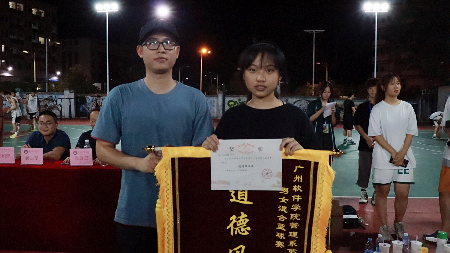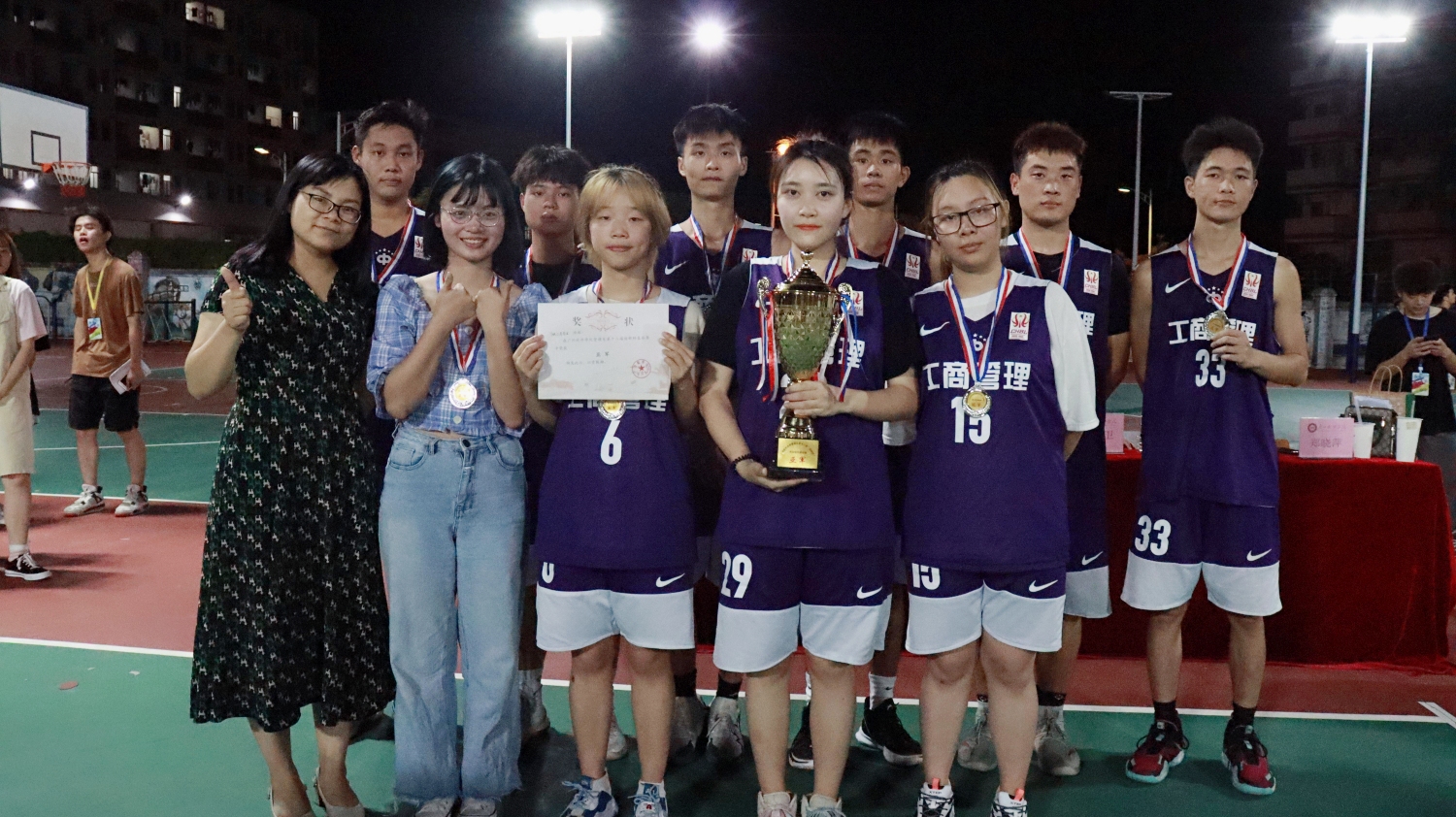 本网讯 伴随着夜晚的微风,管理学子奏响了青春的乐章。2021年5月20日晚上19:30,管理系第十八届迎新杯篮球赛决赛在旧篮球场拉开了序幕。出席本次决赛的嘉宾有:管理系主任张良卫教授、管理系党总支张卫香书记、管理系分团委书记兼学工办主任钟志坚老师、管理系学生会秘书长郑晓萍老师、管理系党总支组织委员王柏荣老师。