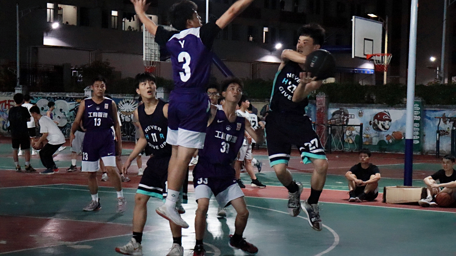 第一场比赛是季军争夺战,由19市场营销班对战20行政管理班。在裁判的哨声吹响后,双方队员全神贯注地投入到激烈的比赛中。双方队员攻守兼备,默契的配合、帅气的远投、精准的罚篮,将比赛推向了高潮。他们在篮球场上挥洒汗水、放飞梦想,尽显管理学子的青春气息。赛事过半后,双方队员调整战术,寻找机会,快速进攻,突破上篮。队员之间互相鼓励提醒,用热情感染队友,用激情鼓舞士气。与此同时,场下的观众也不甘示弱,纷纷为他们欢呼呐喊,一阵阵加油声响彻篮球场。最终20行政管理班更胜一筹,获得了本场比赛的胜利,夺得了季军。