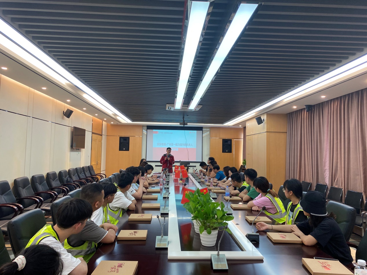 接下来,能力提升部负责人刘水健经理分享了京东的历史,希望同学们能够珍惜京苗班学员的身份,思考自己“为什么来,带什么离开”,并在实训过程中要认真对仓储工作进行分析,加强与园区管理员的交流。随后,他代表九龙亚一欢迎京苗班学员的到来。