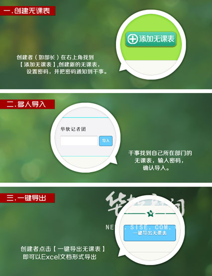 据了解,每年学生社团招新后,各社团秘书部门都要制作空闲表,以此安排工作、会议时间。F+n工作室称,手动制作空闲表,步骤繁琐,且容易出错,考虑到网络上还没有自动汇总数据、制作空闲表的软件或者平台,因此,团队决定开发相关应用以解决问题。10月12日,全国首款学生社团空闲表制作“利器”——“智能无课表”正式上线,仅两天即拥有用户逾千人。许多社团纷纷表示无课表十分易用,大大减轻了社团组织秘书的工作量。