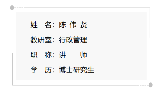 3. 2010年至今 广州软件学院,曾任辅导员、心理中心教师,现任行政管理专业教师
