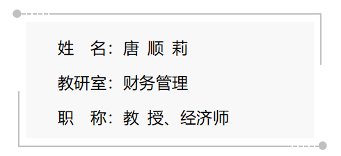 长期从事高校财务管理教学与研究,参与企业财务咨询与会计人才培养体系设计;推动省级一流课程建设(《财务管理》课程思政);主持校级重点专业建设(会计学); 指导青年教师获省级教学竞赛奖项 ;指导学生获省级以上专业竞赛奖项