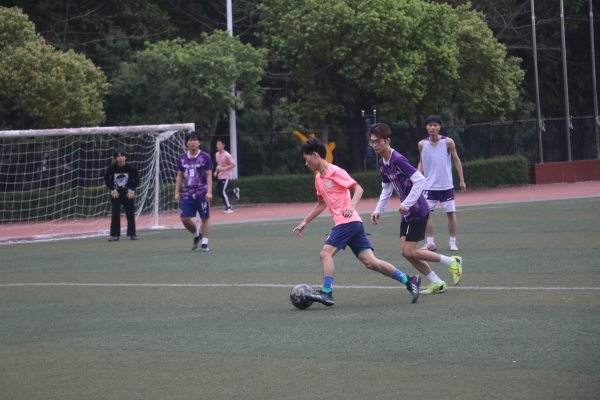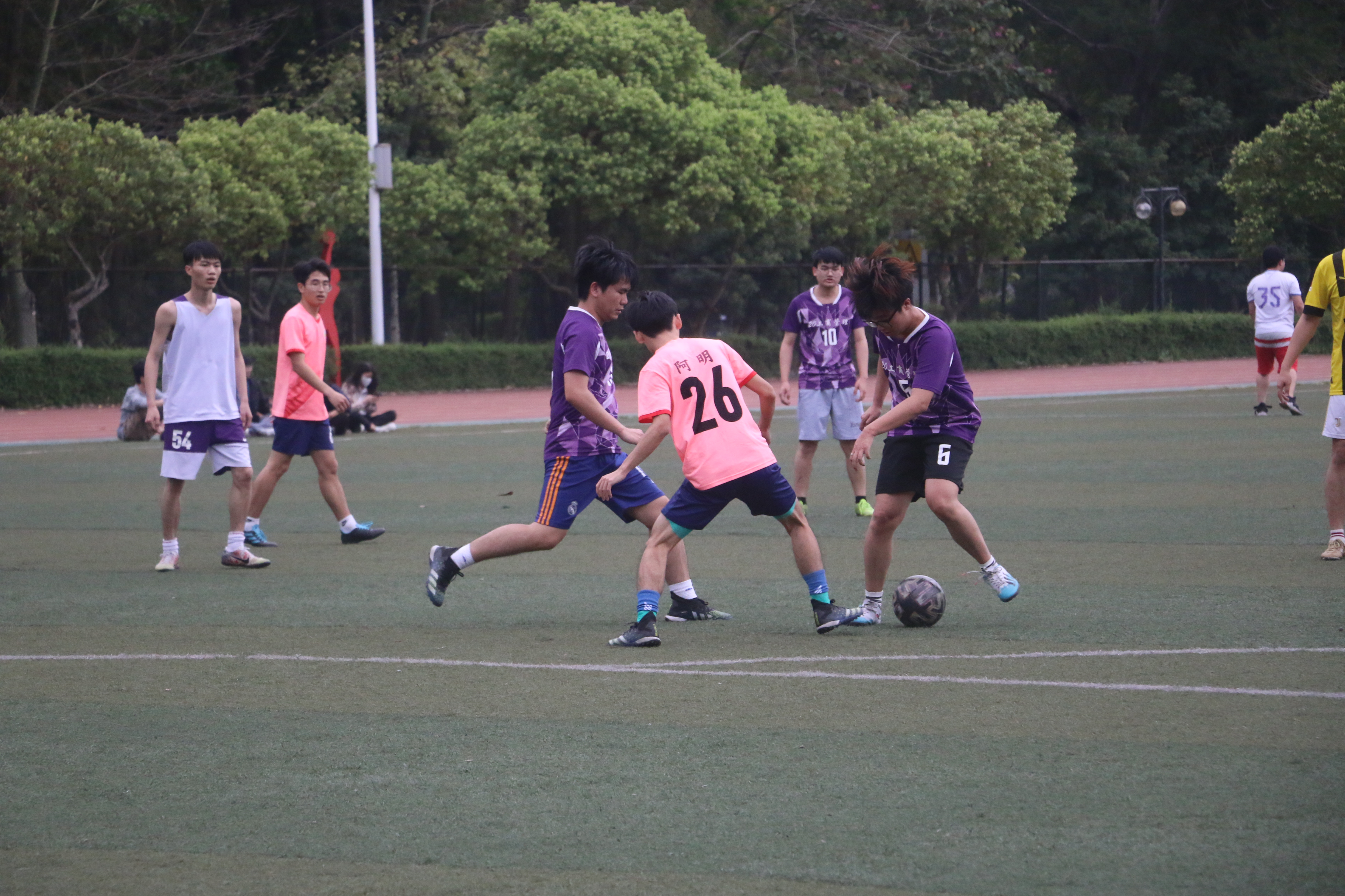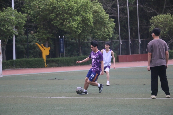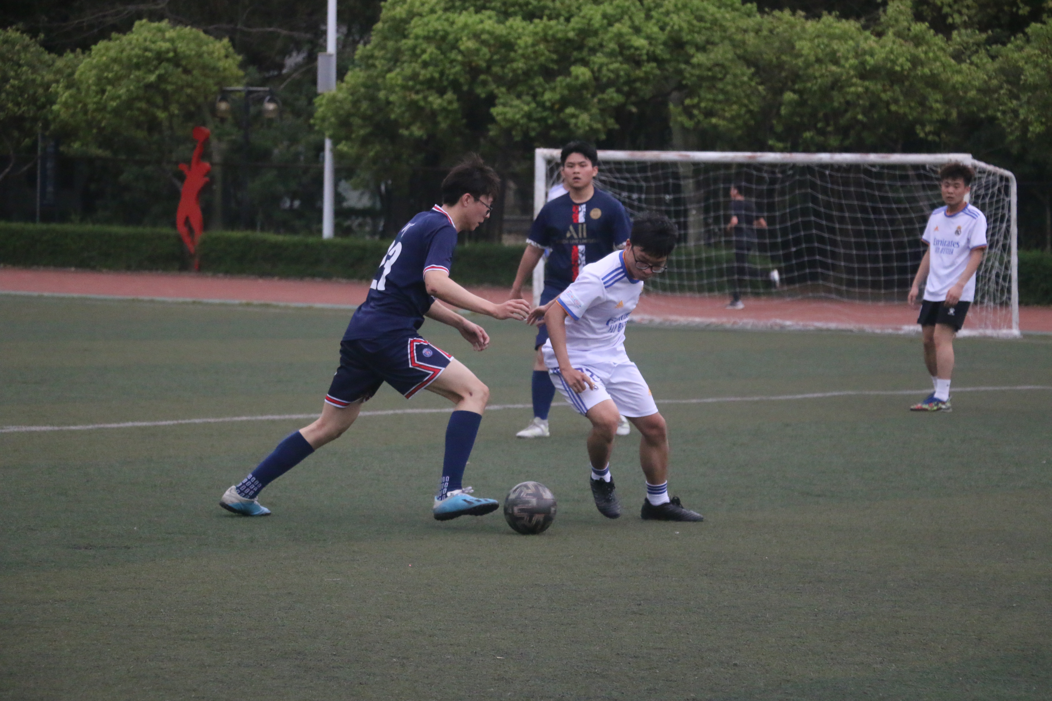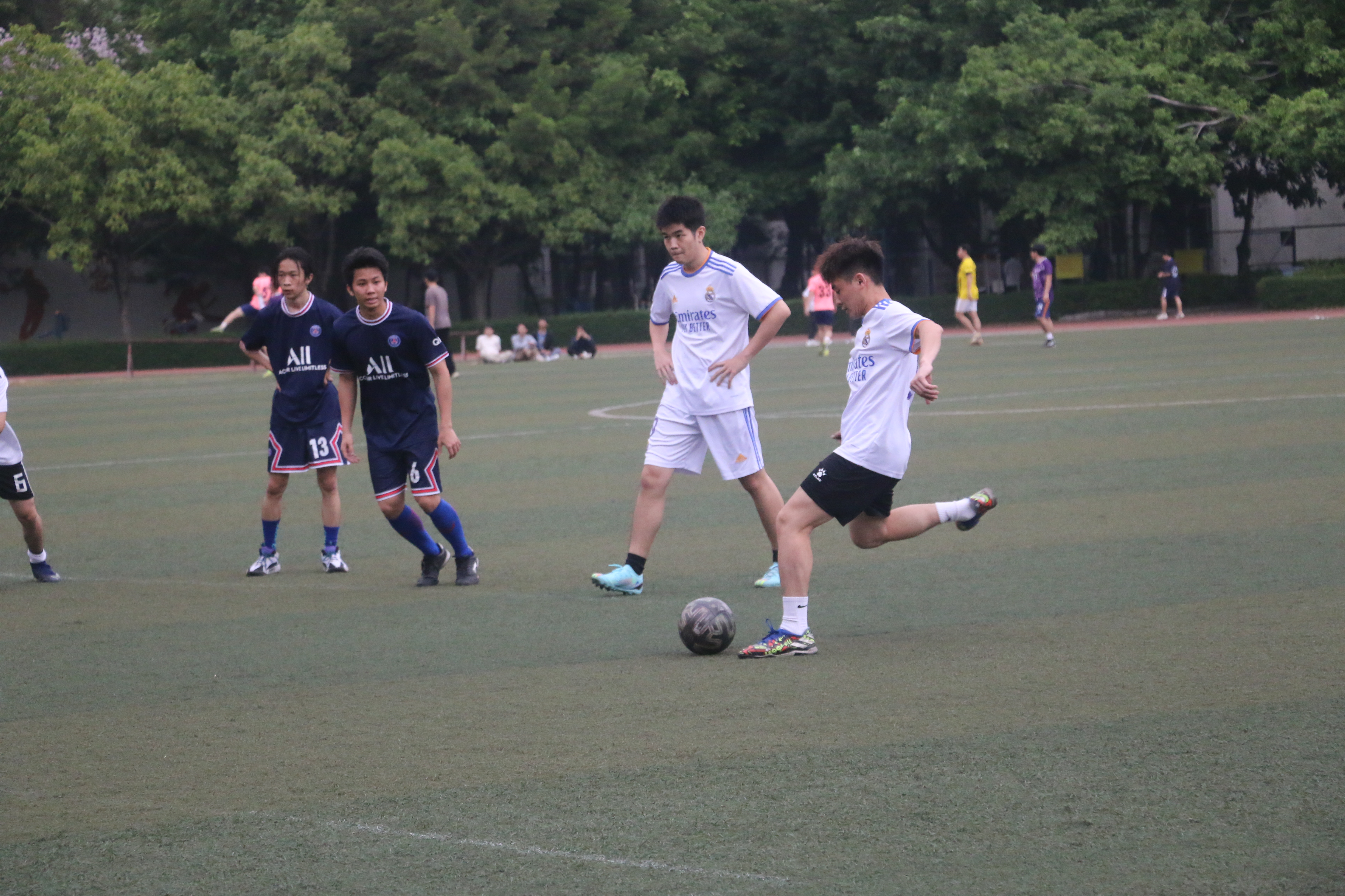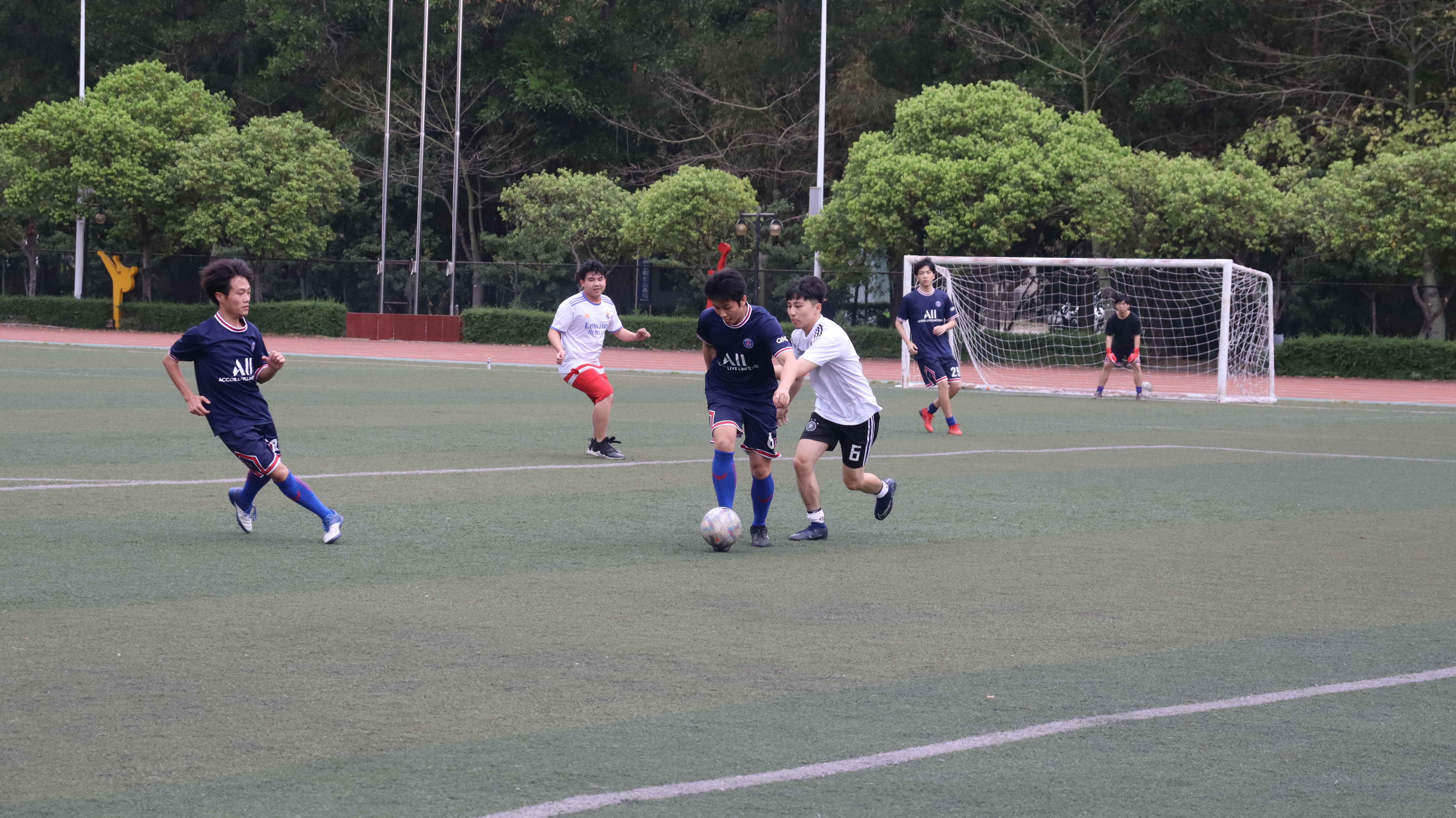 与此同时,掀起比拼狂潮的还有季军争夺赛。在偌大的球场上,他们肆意追逐,体力在不断消耗,他们依然没有选择放弃。参赛选手们用他们的行动向我们展示了拼搏精神。不知不觉中,比赛也进入了高潮阶段。在观众们屏息凝神间,20级工商管理班的参赛选手左脚把球一堆、一提,一个完美的弧度,将足球击中在对方的球框里。欢呼声响起,20级工商管理班夺得了胜利!