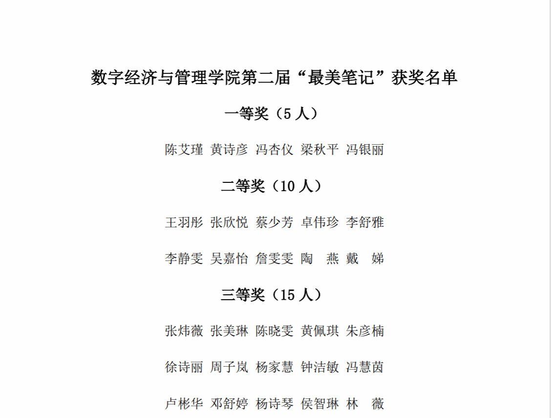 至此,数字经济与管理学院“最美笔记”表彰活动顺利落下帷幕。此次活动有效引导我院学子主动涵养优良学习习惯,进一步点燃了全体学生的求学热情。活动不仅营造出浓厚向上的学风氛围,帮助同学们明晰学习方向、积淀成长力量,更为学院高质量教育教学发展注入了新的动能,推动师生同心聚力、共赴卓越。