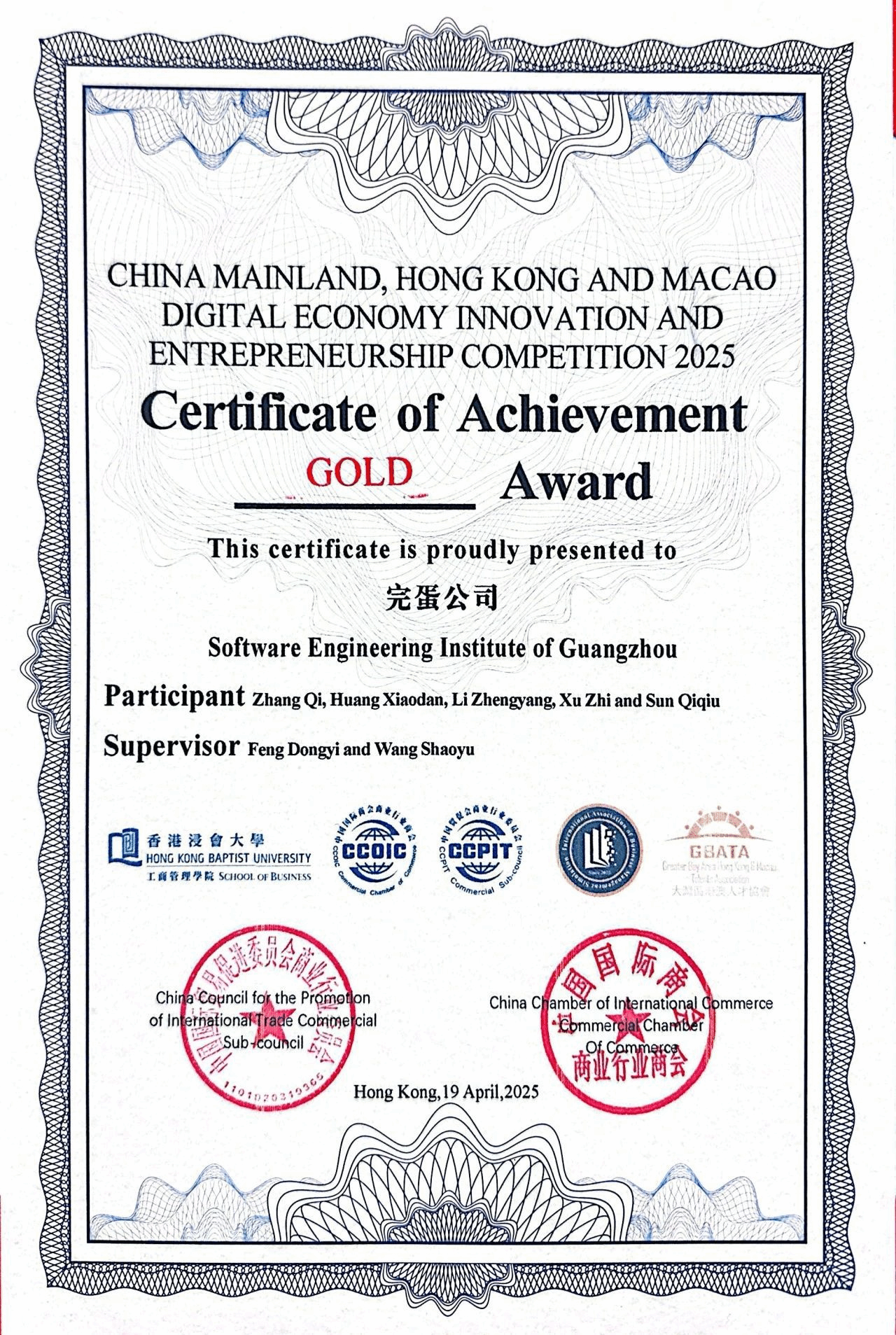2025年获得内地与港澳地区数字经济创新创业竞赛金奖