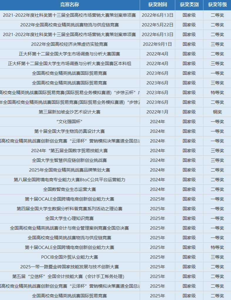 2023年11月获得2023年全国高校商业精英挑战赛创新创业竞赛“精创教育杯”流通业经营模拟赛道全国总决赛一等奖