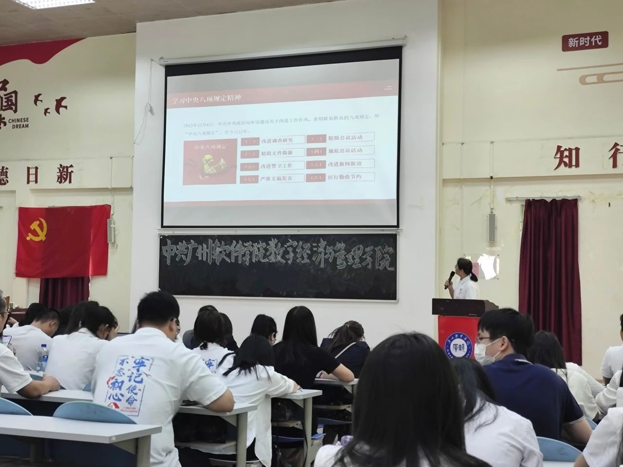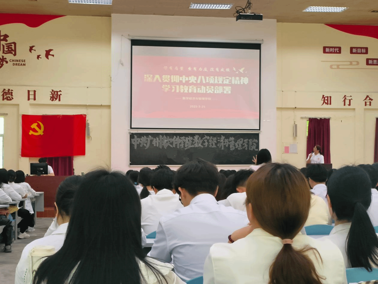 3月25日下午,数字经济与管理学院在礼堂二召开深入贯彻中央八项规定精神学习教育工作动员部署会。学院院长刘保庵及全体师生党员200余人参加了会议,会议由学院党委书记李文娟主持。