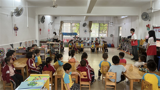 本网讯 为了深入学习宣传贯彻党的二十大精神,传承和发扬劳动精神,丰富新时代青年的社会实践经验,管理系“曦望计划”志愿服务队于2023年4月28日下午前往从化区城郊街明珠社区明珠幼儿园,为小朋友们开展了“快乐迎五一,劳动润童心”主题课堂活动。