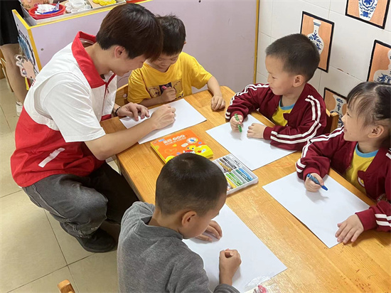 此外,志愿者还让孩子们在纸上绘画出自己心目中劳动者的形象。孩子们跃跃欲试,通过丰富的想象力绘制出了五彩缤纷的绘画,展现了他们纯真的内心和对劳动的向往与尊重。