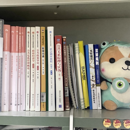 书籍收纳一般将本学期使用的课本和近期所要考试的相关资料放在最上层,将所有书籍按照从大到小依次从左向右进行摆放,同时放置一些笔记本和课外书籍方便阅读。为了防止书籍滑落,可放置一些摆件起到稳固的作用。