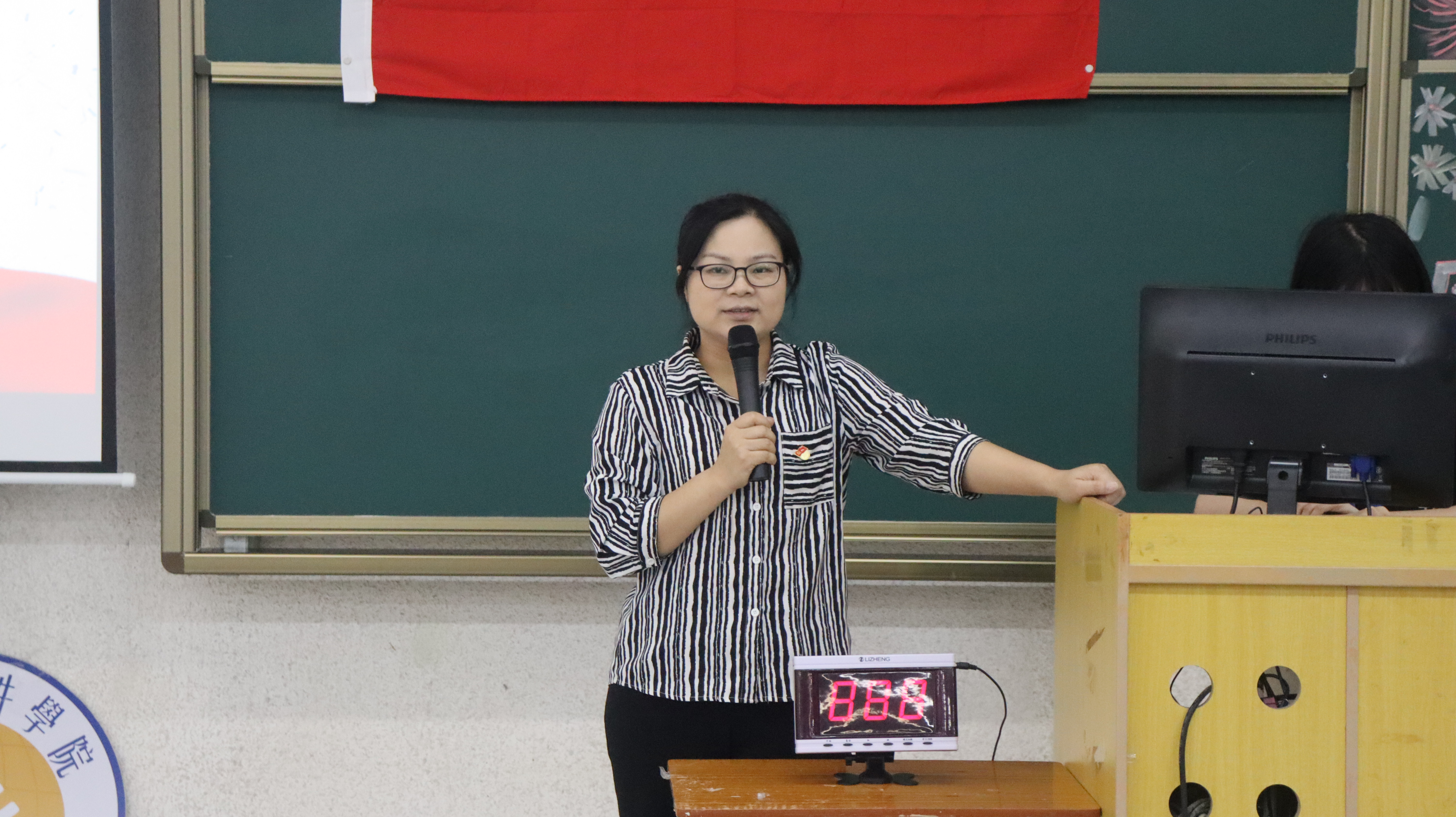 比赛的尾声,由张卫香书记为大家进行总结。首先她感谢选手和亲友团的积极参与以及台前幕后工作人员的辛勤付出,共同为此次大赛顺利开展奠定基础。同时,她也提出了两点不足,一是希望有更多的同学积极踊跃地参与进来;二是希望选手们在日后能够更进一步地加强理论学习,巩固知识并学习悟透。最后,她希望大家都能励志做一名有理想、敢担当、能吃苦、肯奋斗的新时新青年。