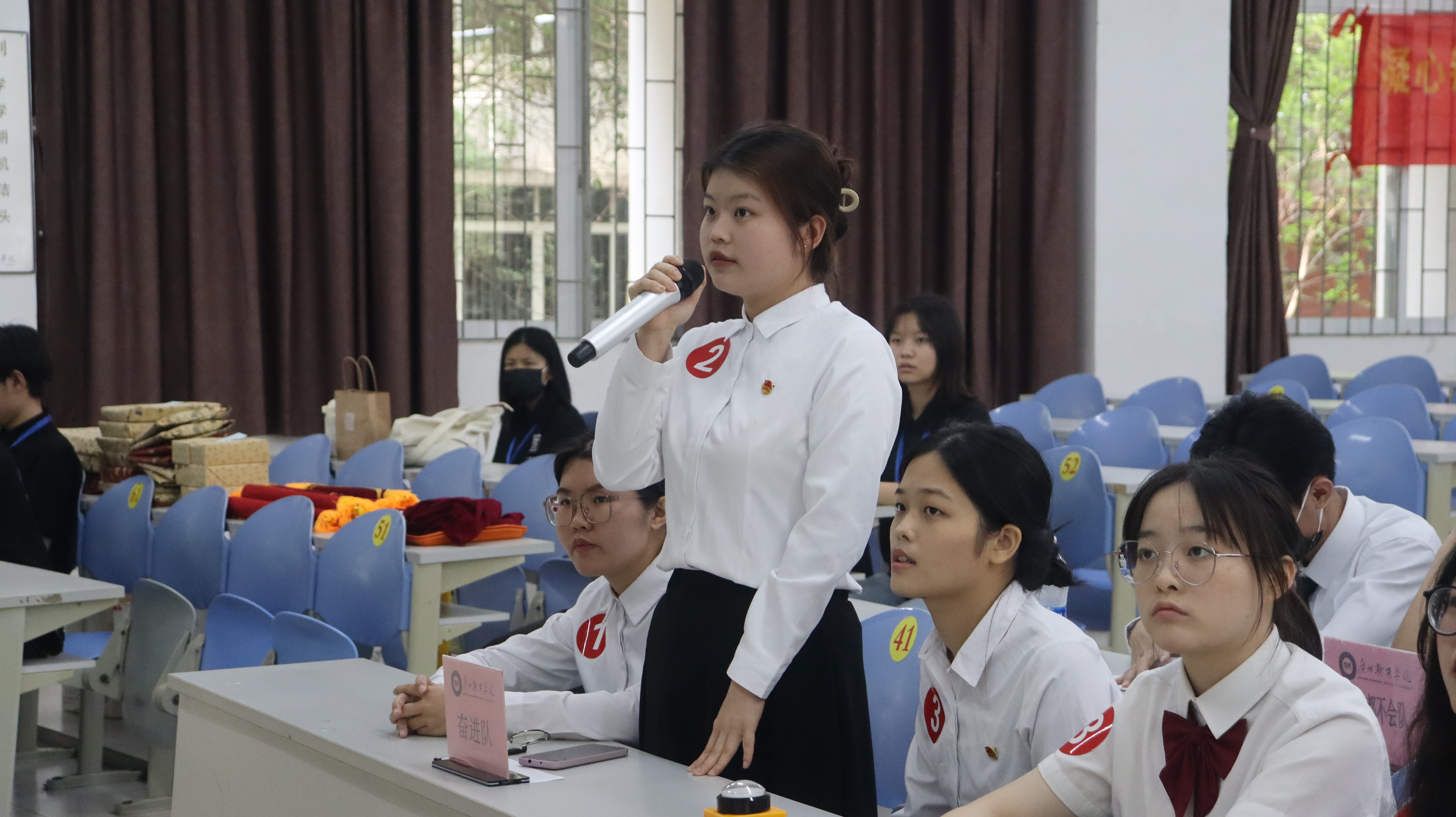 随后比赛进入第二个环节环节,各小组代表需通过按下抢答器来进行抢答。随着抢答口令一声令下,这场知识与手速的比拼一触即发。选手们全神贯注,眼疾手快,反应迅速,抢答激烈,现场气氛热烈。