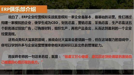 社联干事对ERP俱乐部未来的发展表示真诚的祝愿。