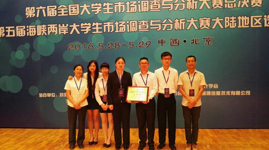 本网讯 近日,由教育部高等学校统计学类专业教学指导委员会与中国商业统计学会共同主办的“第六届全国大学生市场调查与分析大赛总决赛暨第五届海峡两岸大学生市场调查与分析大赛大陆地区选拔赛”在北京对外经济贸易大学举行。我院管理系与网络技术系学生组成1支团队“EU行动组”与东北财经大学、中央财经大学、中南财经政法大学、对外贸易经济大学、南京邮电大学等国内高校队伍一起闯入决赛,最终夺得本科组全国二等奖。
