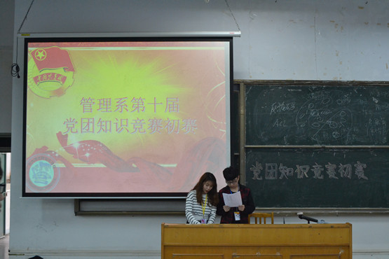 本网讯 为了活跃支部文化氛围,促进党团员之间的交流,搞好党团建设,激发我系党团员学习党团知识的积极性,进一步向党组织靠拢,我系第十届党团知识竞赛决赛于4月15日下午在E101激情开赛!出席本次的大赛的嘉宾有管理系党总支书记罗达和系全体辅导员老师。...