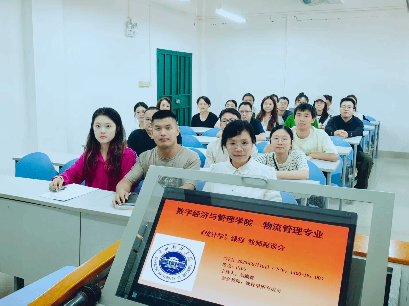 为夯实统计学课程教学根基,提升教师授课质量与协同育人能力,2025年9月16日下午14:00-16:00,数字经济与管理学院物流管理专业于U105教室组织开展统计学课程教师座谈暨首次集体磨课活动。全体统计学授课教师齐聚一堂,以“聚焦课堂实效、优化教学细节”为核心,先围绕课程教学中的数据案例适配性、公式推导通俗化、软件操作衔接等痛点难点展开深度研讨,再通过“模拟授课+即时互评”的形式,对《统计学原理》《应用统计》等课程的教学方案设计、...