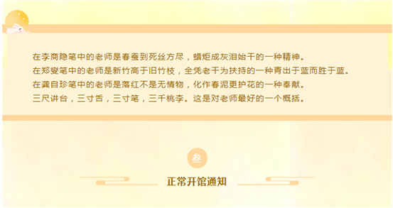 教师节的意义就是提高人们对教师为教育事业所做贡献的认识和评价。中国有悠久的尊师重道的传统,古代就有“人有三尊,君、父、师”的说法。《师说》中:“师者,所传道授业解惑也。”