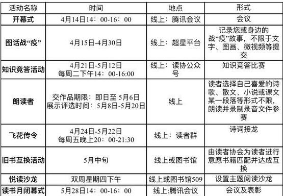 附:第五届 “爱阅读·云悦读”读书月活动一览表