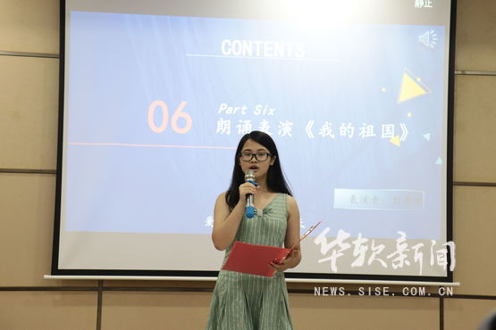 为了更有效的激发师生们对书籍的热爱,培养青年学子读书意识,让更多人感受读书魅力。从去年开始,学院图书馆王凤云馆长带领热爱朗诵的师生们积极参与到从化图书馆举办的朗诵表演比赛中,为从化区各高校的师生展现了华软学子的风采。在今年从化区朗诵比赛中大放异彩的刘秀娜同学现场朗诵了《我的祖国》,慷慨激昂的朗诵引得台下经久不断的掌声。尾声阶段,汉服协会的同学们也带了一段精美绝伦的伞舞《青花瓷》。