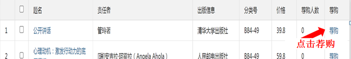 ·读者荐购:如果征订目录上没有自己需要的书籍,可以选择“读者荐购”进行荐购