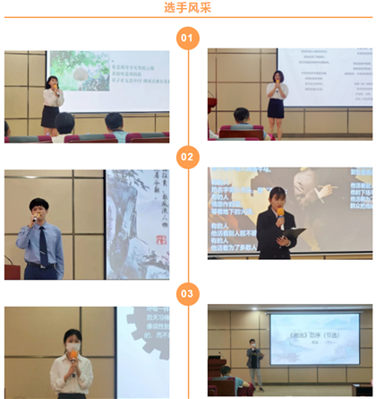 各参赛选手都为比赛进行了精心的准备。整场比赛,选手们的朗读形式丰富多彩,或激昂高亢、或低沉吟诵,或抑扬顿挫、声情并茂。而选手们朗读的篇目风格与意义也是各具特色,有的感悟青春、有的回顾历史、有的歌颂祖国、有的展望未来蓝图……他们的精彩表现为现场观众带来了一场视听盛宴,获得了一阵阵热烈的掌声和喝彩。