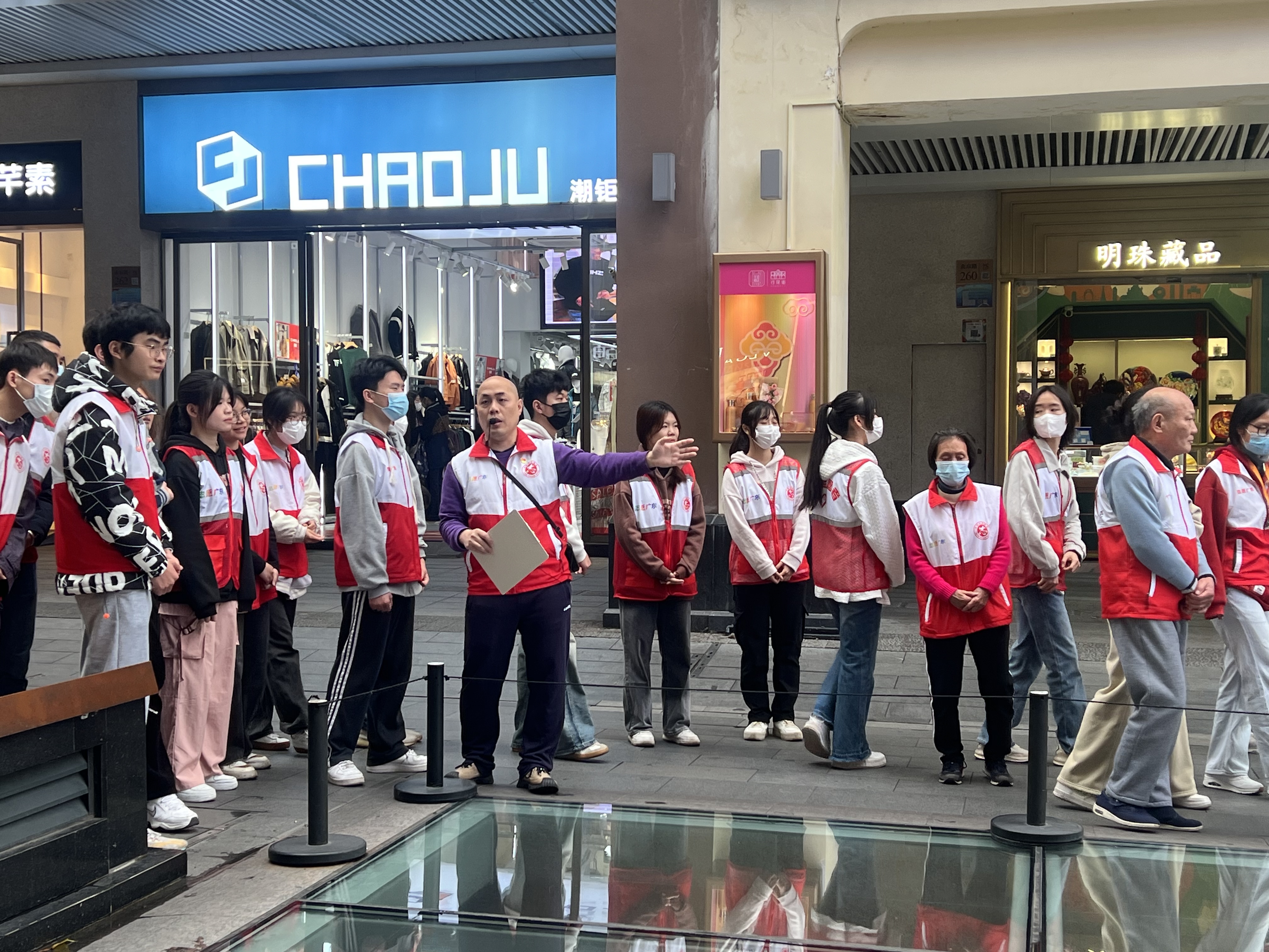 活动伊始,王站长先带领同学们走访了广州市青年文化宫让同学们了解其大概布局,并且给志愿者们介绍了北京路中街的古迹遗址及文化遗产,了解其背景知识和志愿者们的工作范围。
