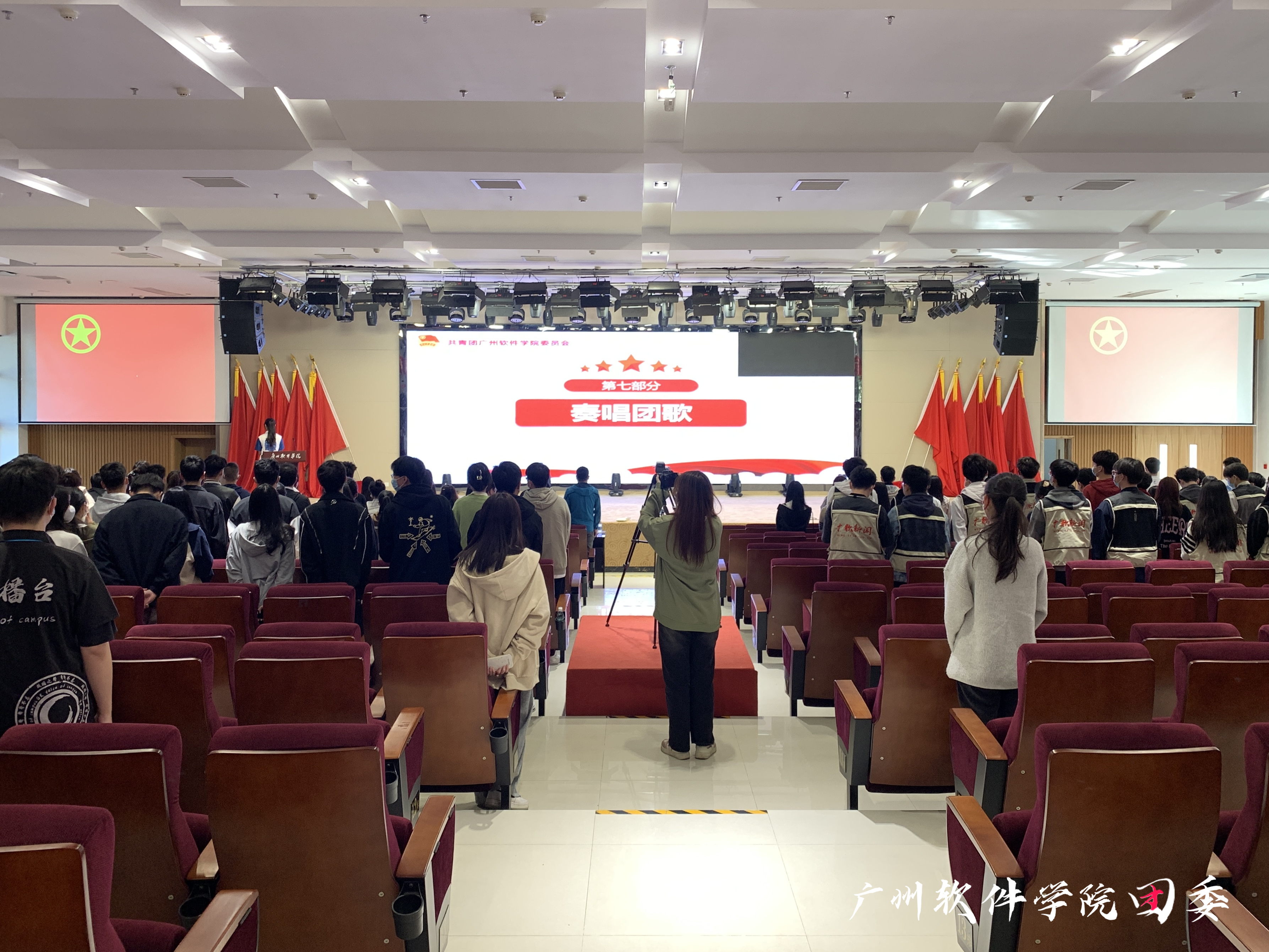 最后,全体成员起立奏唱中国共产主义青年团团歌。随着团歌的响起,全员以激昂嘹亮的歌声表达出了对学校组织的热爱,以及对本学期目标的展望和期待。彰显了青年之活力,青年之朝气。