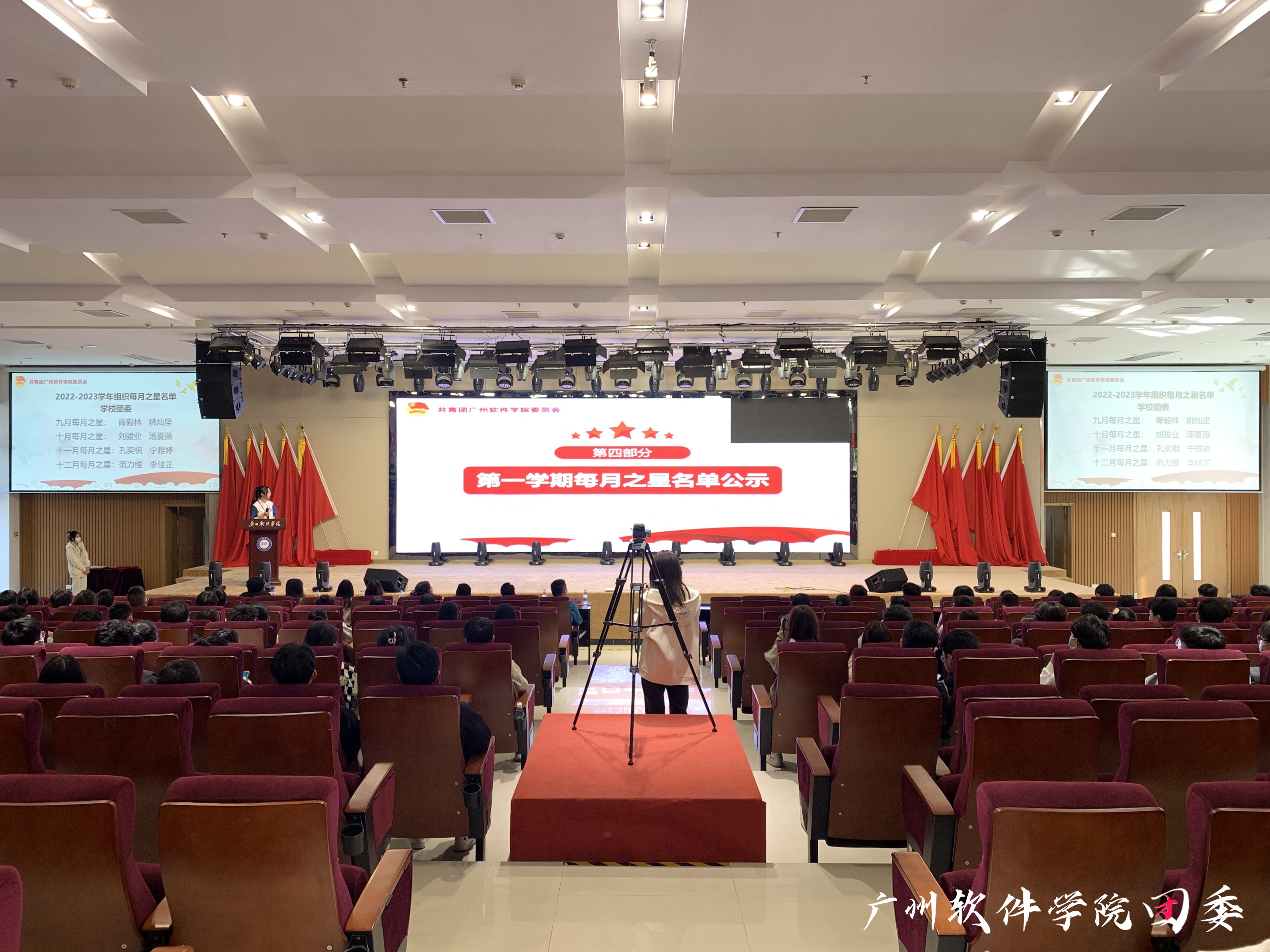 紧接着大会进行第一学期每月之星名单公示和第一学期优秀部门、学生骨干名单公示,并由陈石宇书记给各组织代表进行颁奖。希望学生组织凝聚力量,相互协助,学生骨干们履行职责,为推进我校组织建设作出更大贡献。