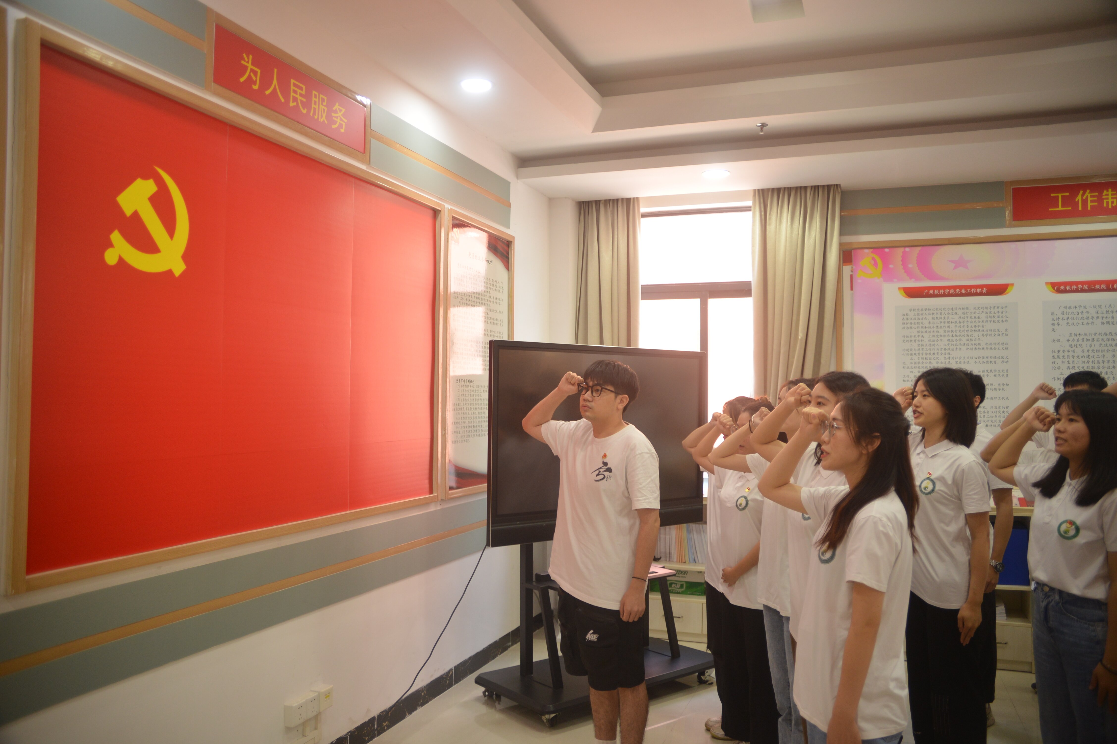 最后,由新转正党员同志的带领,全体支部党员进行了庄严的入党宣誓仪式,铿锵有力的声音在会场回响,诠释着全体支部党员同志全心全意为人民服务的决心。