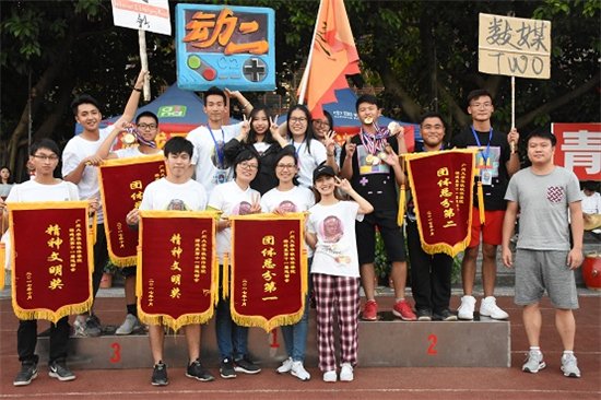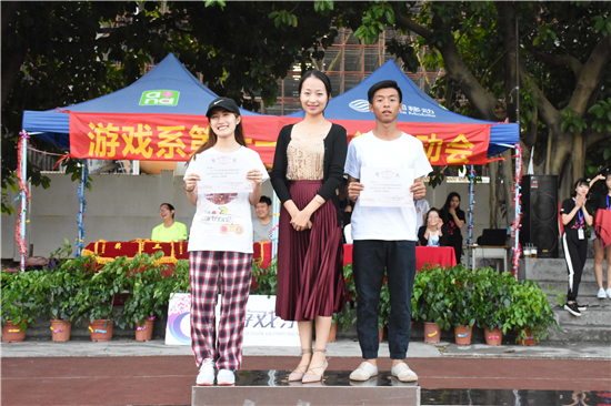 所有赛事结束后,随即也迎来了本次系运会的闭幕式。游戏系党总支陈石宇书记,游戏系分团委书记(学工办主任)许恒梅老师,游戏系学生会秘书长闫新利老师,游戏系辅导员唐增城老师、庞露荷老师、钟婷老师以及胡娉老师出席了该闭幕式。主席台上的各个嘉宾为在本次系运会中表现优秀的人员或团体颁奖。其中,16级动画2班、17级数媒2班、17级网新1班分别获得团体总分的第一、第二和第三名;16级动画2班和17级网新1班荣获精神文明奖;黄启浩、林梓微被评为优秀运动员;张晓雯、胡彩婷等被评为最佳裁判员;甄子强、温银浪等被评为优秀工作人员。另外,林梓微、唐嘉慧、黄嘉祺、黄悦、徐颖诗更是打破了系运会的记录,16级动画2班则是在女子4*100米中打破了团体记录。