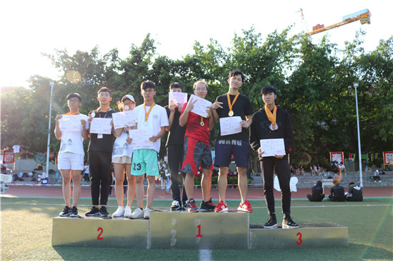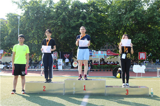 在运动会闭幕式上,由国际经贸系的聂锋主任颁发“道德风尚奖”,由国贸系党总支张洪华书记为团体总分第四至七名颁奖,数码系党总支林亮书记为团体总分前三名颁奖。