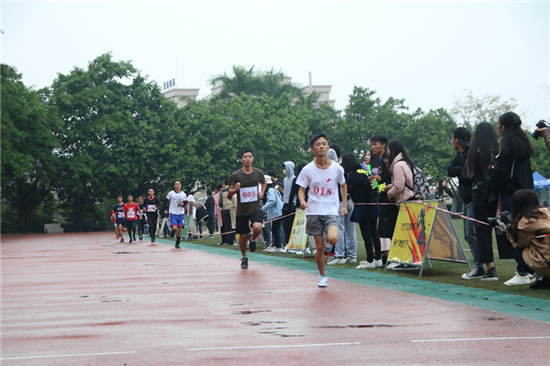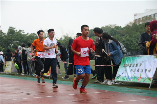 由于场地潮湿,天气恶劣,严重影响到运动员的精神状况,但是参加学生男子3000米小型马拉松项目的运动员们,面对如此恶劣的天气,依旧热情不减。比赛过程中,部分运动员由于天气原因,跑步的过程中,面露苦色,可因为体育竞技的精神——坚持,坚持跑完比赛的信念支持他们跑完整场比赛。