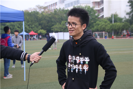 赛道现场,记者一行有幸采访了学院何大进院长、团委罗达书记以及数码媒体系党总支林亮书记。
