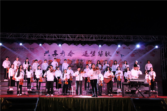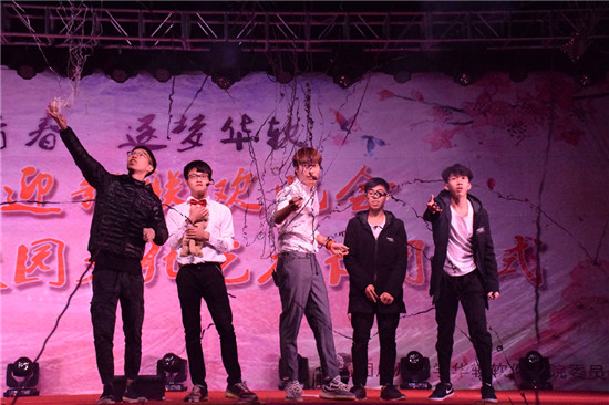 第二篇章“华软印象”以其精彩绝伦的表演形式,将传统文化与现代风格相结合,创造了新奇的艺术形式。从而勾起了多数人的华软回忆,收获了在场观众的阵阵掌声。随后,2017级新生辅导员代表杨志聪老师、学院团委刘丹老师登上舞台,为我们带来歌曲《爱因为在心中》,把现场的气氛推向了高潮。