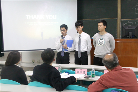 随后,各参赛队伍分别于教学楼A101、A102、B101、B201课室进行答辩。“懒宝宝掌上美食团队”以华软为试点做了问卷调查,针对当代大学生起床晚吃不上早餐而研发“懒宝宝掌上美食App”。团队发言完毕,评委老师对此项目进行评价。