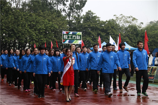 最后出场的便是我们的教工方队,老师们精神抖擞,积极参与到运动场上的运动项目中来。在平日的课余时间,他们也早早做了充分的准备,每晚的操场上我们总能看到他们的身影,为人师长的他们用实际行动去教导学生如何发扬体育精神和展现自我风貌。